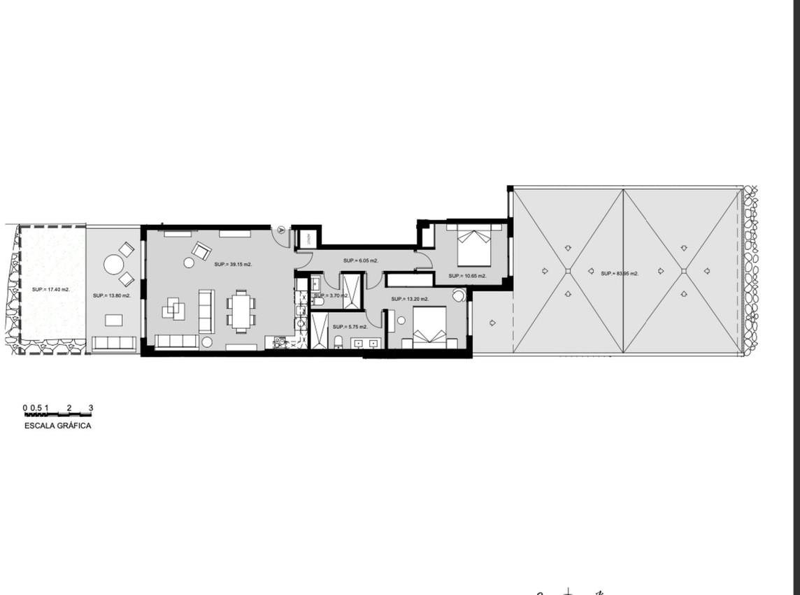 It features two private terraces with a total surface area of 110 m², providing the opportunity to enjoy sunshine throughout the day. The main terrace and garden, accessed directly from the living area, benefit from a south-west orientation, while the rear terrace is east-facing, ensuring natural light at different times of the day.