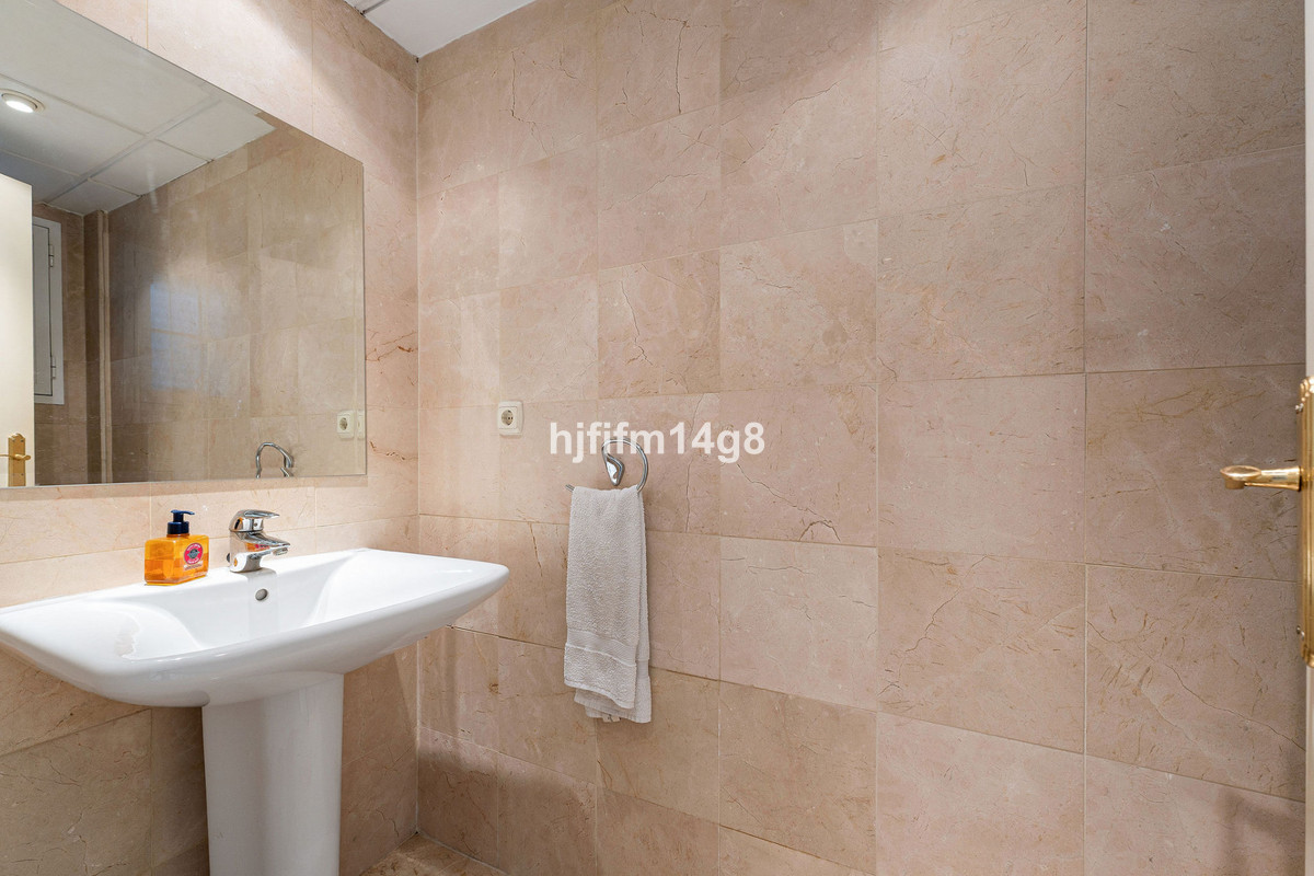 The townhouse is distributed over several levels and offers generous interior and exterior spaces. On the entrance level, you will find a bright and inviting combined living and dining room featuring an open fireplace and direct access to a south-facing terrace, perfect for enjoying Marbella’s year-round sunshine. The fully fitted kitchen is practical and well laid out, complemented by an entrance hall, storage room and a guest toilet on this level.