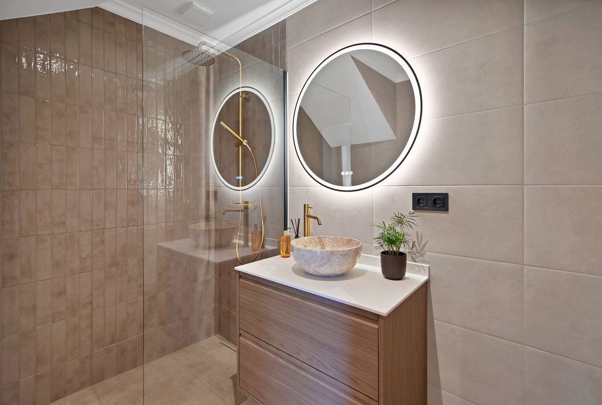 Upstairs you’ll find a bright and spacious master suite with walk-in wardrobe and en-suite bathroom. Large windows open onto a sunny south-facing terrace — your private spot to enjoy peaceful mornings and golden sunsets.