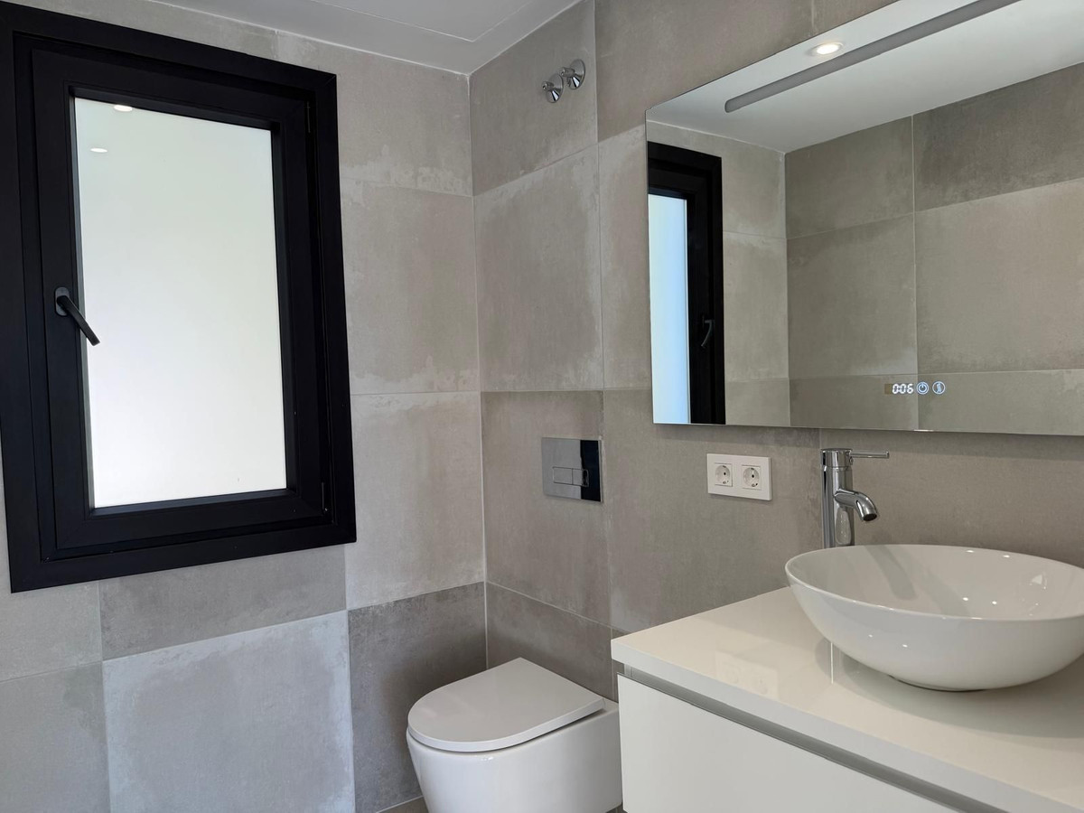 The property includes three spacious bedrooms, all en-suite, and a total of five bathrooms, ensuring comfort and privacy for all. Every room is equipped with independent air conditioning, providing year-round climate control.