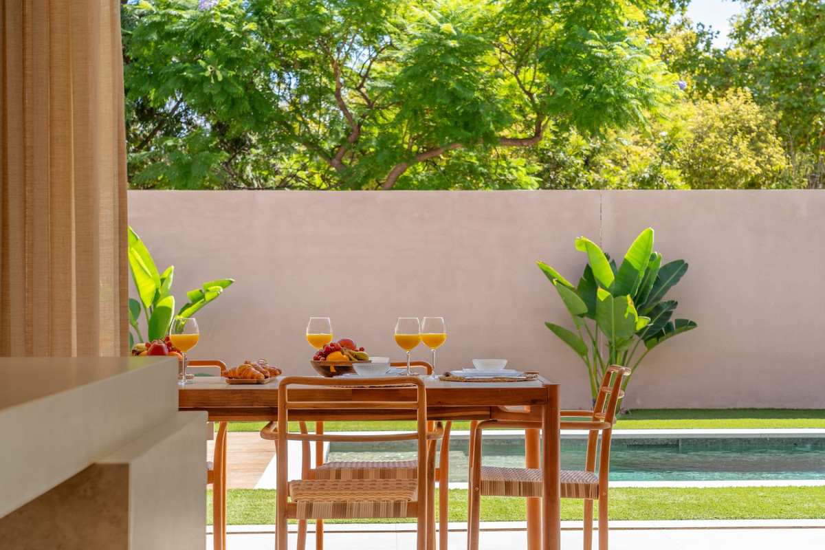 It features a heated saltwater swimming pool (3 x 17 m), private garden and an outdoor terrace fully equipped for al fresco dining or enjoying a drink at sunset with mountain views.