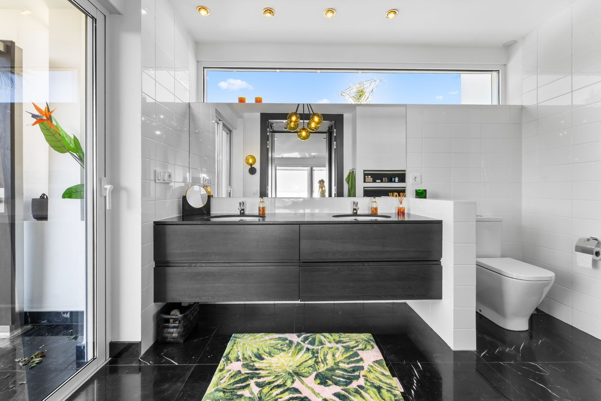 Spread across three expansive levels plus a private guest wing, the residence offers both grand entertaining areas and intimate private retreats. Every room has been positioned to embrace the surrounding landscape, with large glass openings framing breathtaking views of the Mediterranean and the hills of Fuengirola.