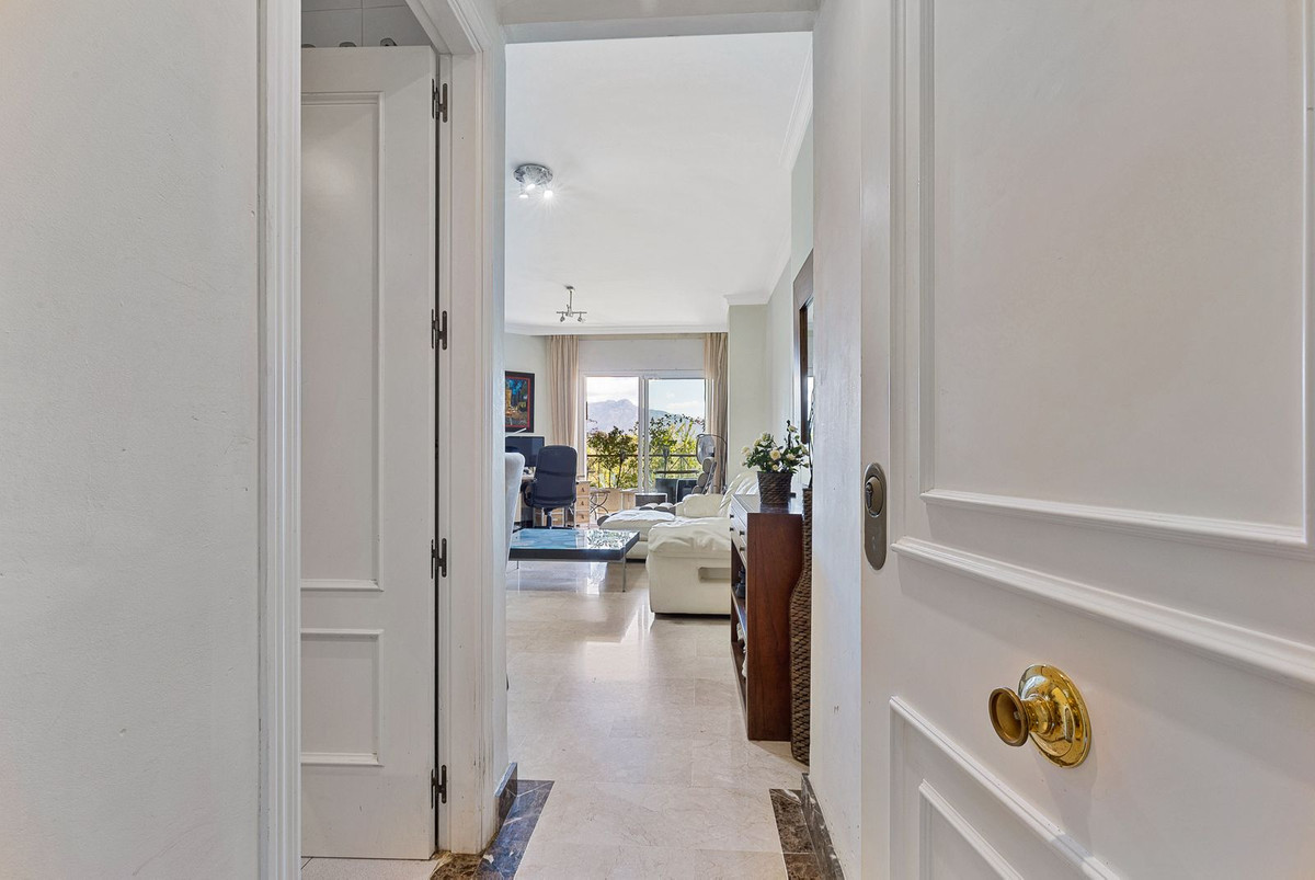This cozy apartment features a bright lounge, a fully equipped kitchen, two bathrooms (including one en suite), and two bedrooms with fitted wardrobes. Enjoy elegant marble flooring, a covered terrace with great views and access to mature communal garden and a shared pool.
