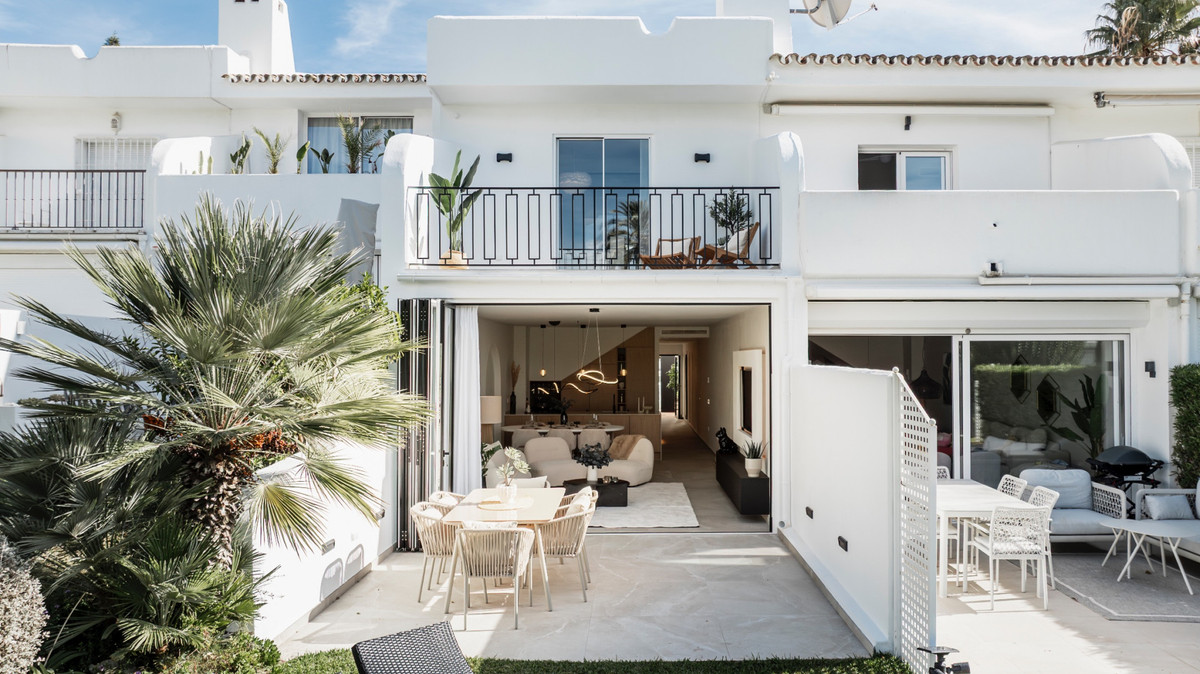 Beautifully renovated four-bedroom townhouse, where light, space, and modern comfort come together seamlessly. Located in the highly sought-after and family-friendly community of La Rinconada in Nueva Andalucía, this home perfectly embodies Marbella’s relaxed lifestyle. Surrounded by the lush greenery of the renowned Golf Valley, the property sits within a charming, gated Andalusian-style complex.