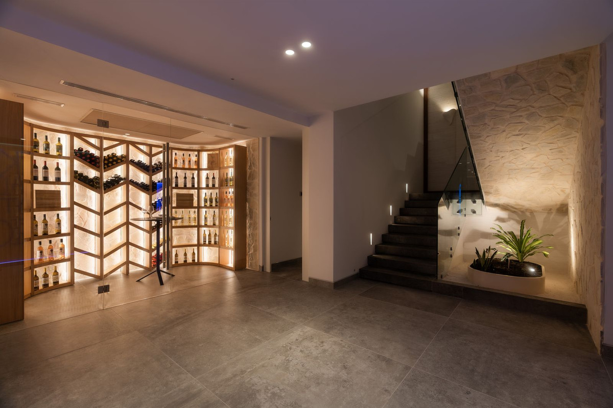 Cette villa dispose d'un spa privé avec piscine intérieure chauffée, sauna, hammam et espace massage. Une salle de sport entièrement équipée avec du matériel Eleiko vous permet de rester en forme sans quitter la villa, tandis que la vaste salle de divertissement offre un cadre idéal pour des soirées cinéma, des jeux ou simplement des moments de détente en famille ou entre amis.