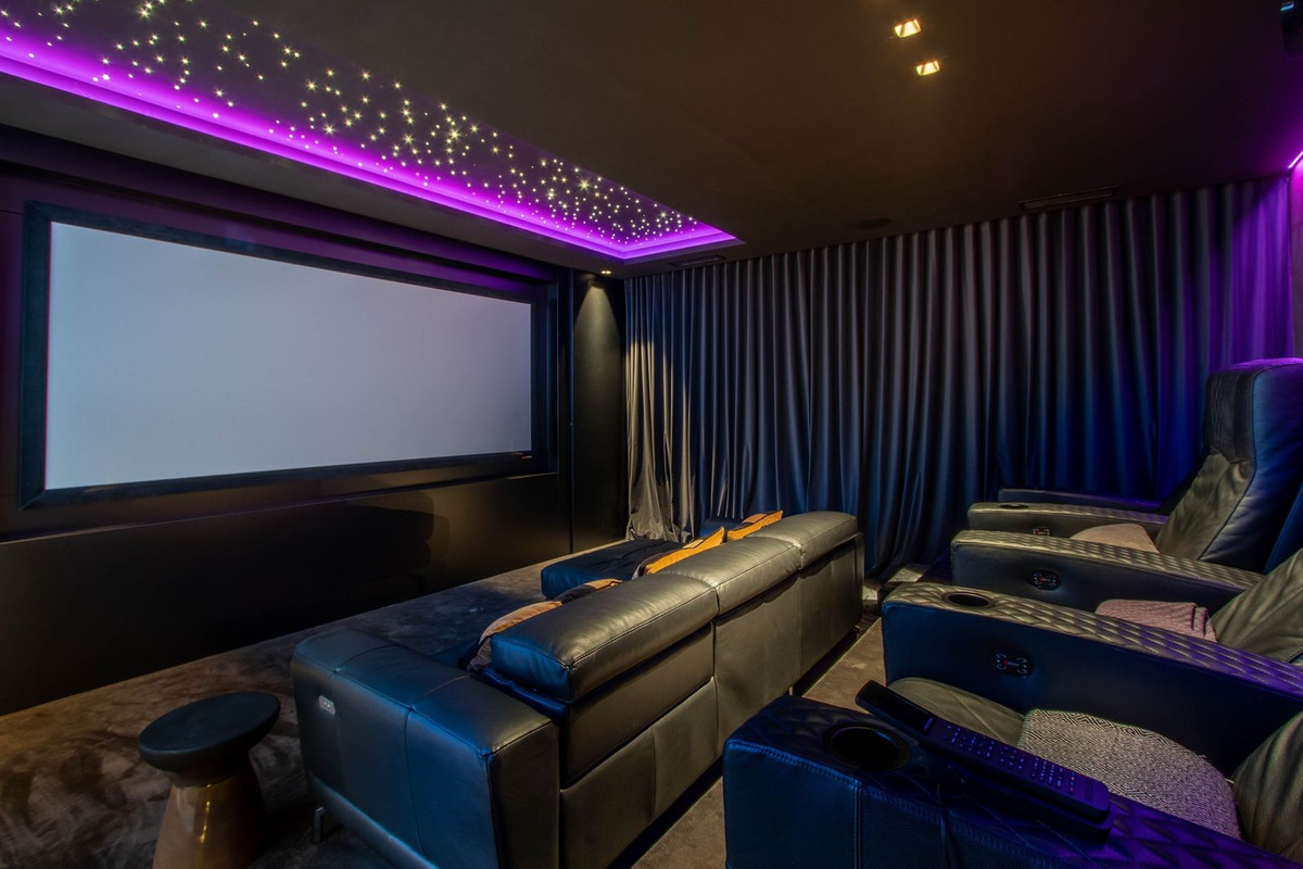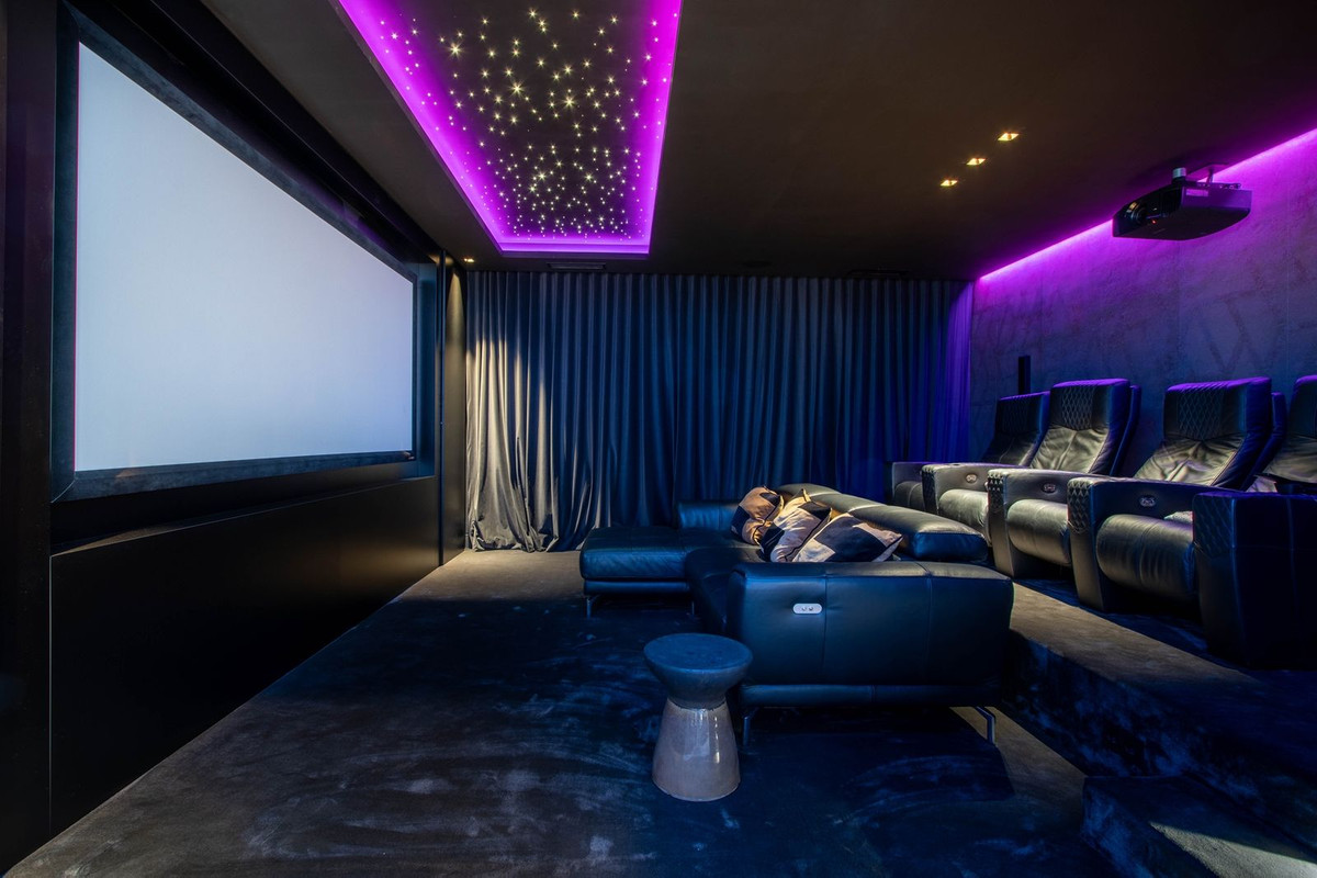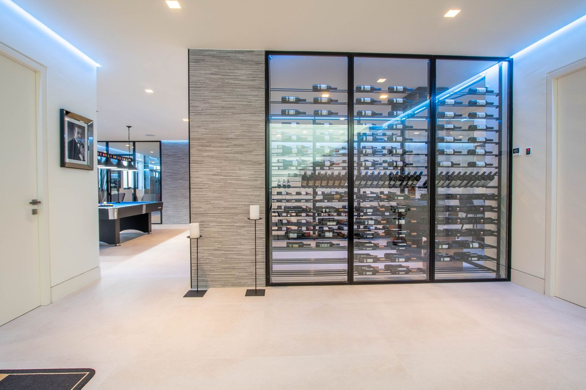Le sous-sol spectaculaire est entièrement équipé, comprenant une aire de jeux, une bodega sans rendez-vous, un bar, un coin salon, un spa, une salle de sport, une buanderie et une véritable salle de cinéma.