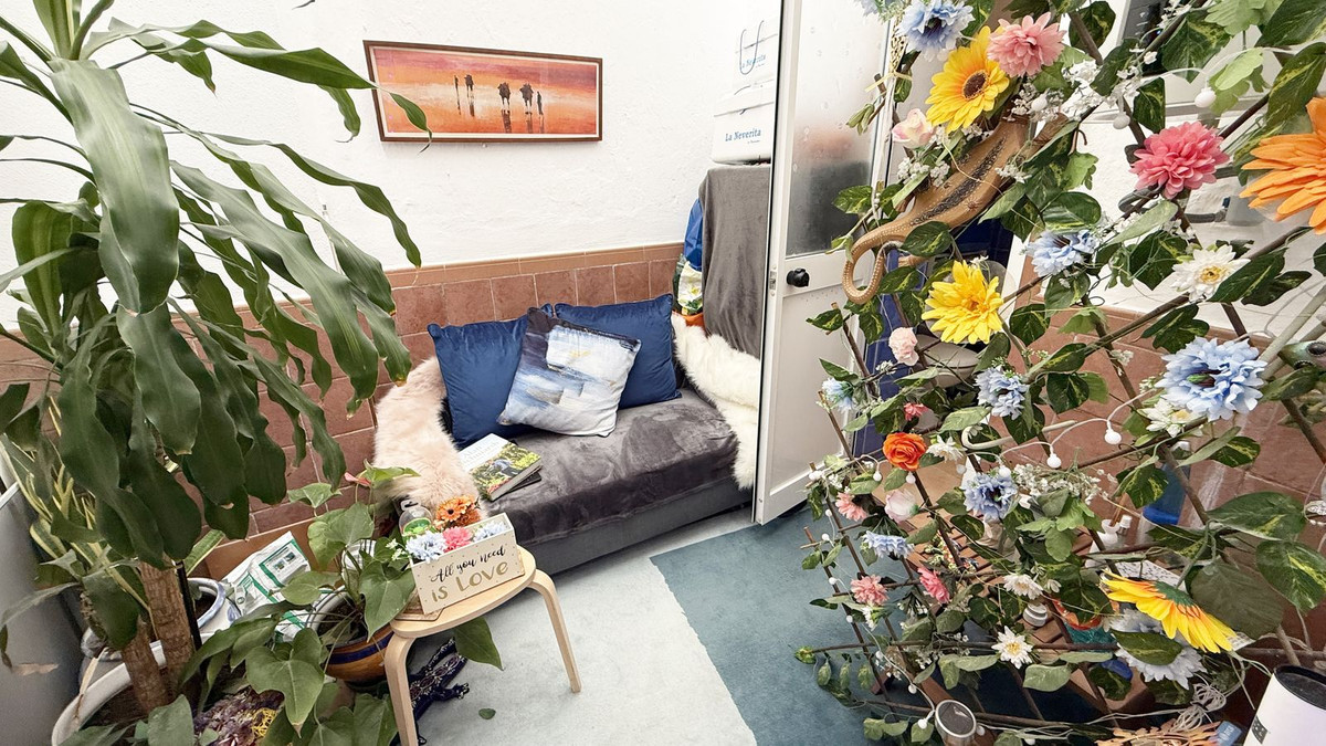 Depuis la terrasse couverte, un escalier mène à l'impressionnante terrasse sur le toit, d'où l'on peut profiter d'une vue imprenable sur la ville et les montagnes environnantes ; l'endroit idéal pour bronzer, se détendre ou prendre un verre en admirant le coucher du soleil.