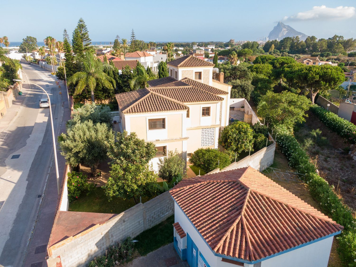 Découvrez cette impressionnante villa située dans un quartier résidentiel privilégié, à seulement 2 km de La Línea et à seulement 3 minutes à pied de la plage.