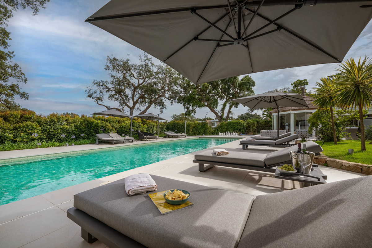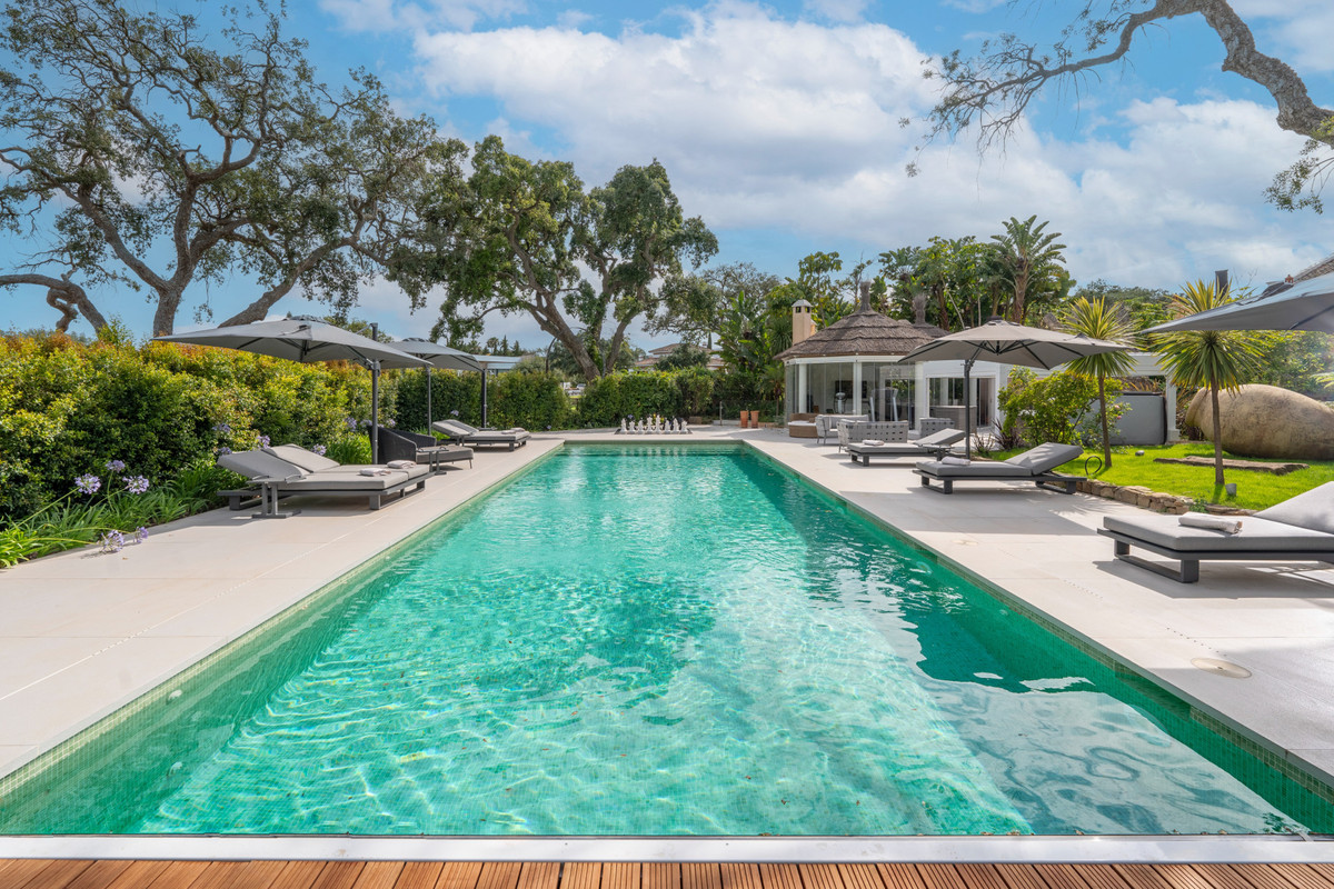 Outside, the mature and meticulously maintained gardens frame the house beautifully and enhance its stately character. The pool area, with a heated swimming pool and a pool house with gym, creates an ideal setting for relaxation, wellbeing, and outdoor living.