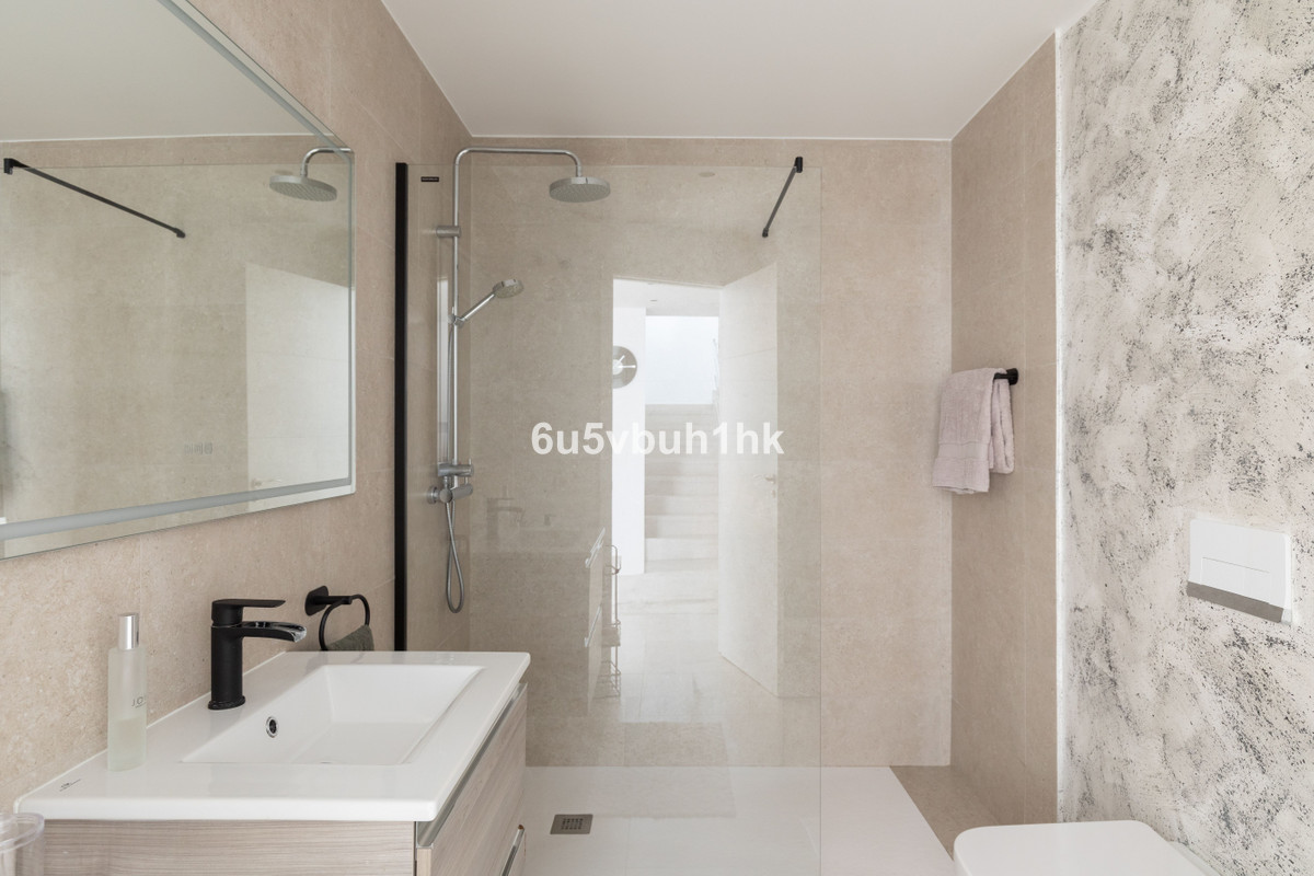 Le niveau inférieur offre un atout rare pour les appartements espagnols : un vaste hall d’entrée accueillant qui renforce l’impression d’être chez soi. On y trouve trois chambres lumineuses et spacieuses. La chambre principale dispose d’une salle de douche attenante et d’un accès direct à un patio privé clos – un espace polyvalent idéal pour un sauna, une salle de sport ou un coin détente ombragé. Les deux autres chambres bénéficient également d’une vue sur la mer et partagent une salle de douche moderne.