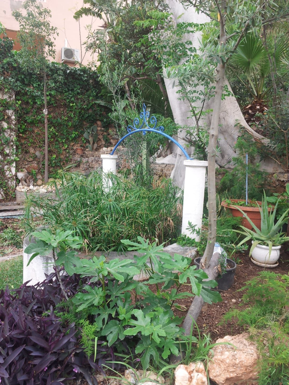 En traversant le jardin, on trouve un appartement indépendant avec vue sur la mer, comprenant une chambre, une salle de bain complète et une terrasse privée, idéal pour les invités ou comme opportunité de location.