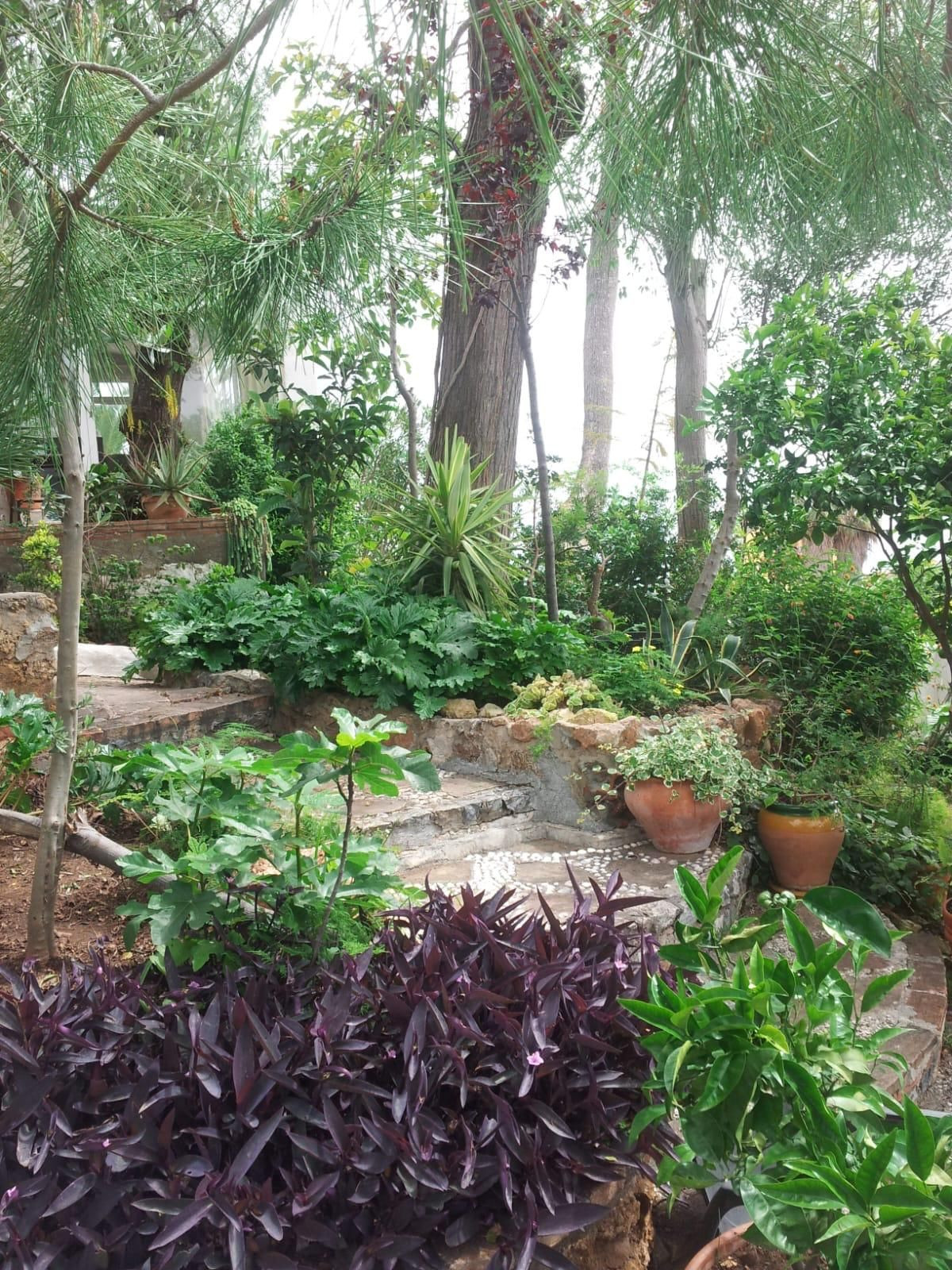 La maison principale comprend trois chambres, une salle de bain complète et des toilettes pour invités. En entrant, un escalier mène à un charmant patio, d'où l'on accède à la cuisine et à un couloir desservant les chambres. La propriété offre également un salon spacieux et lumineux avec vue sur la mer et accès direct au jardin.