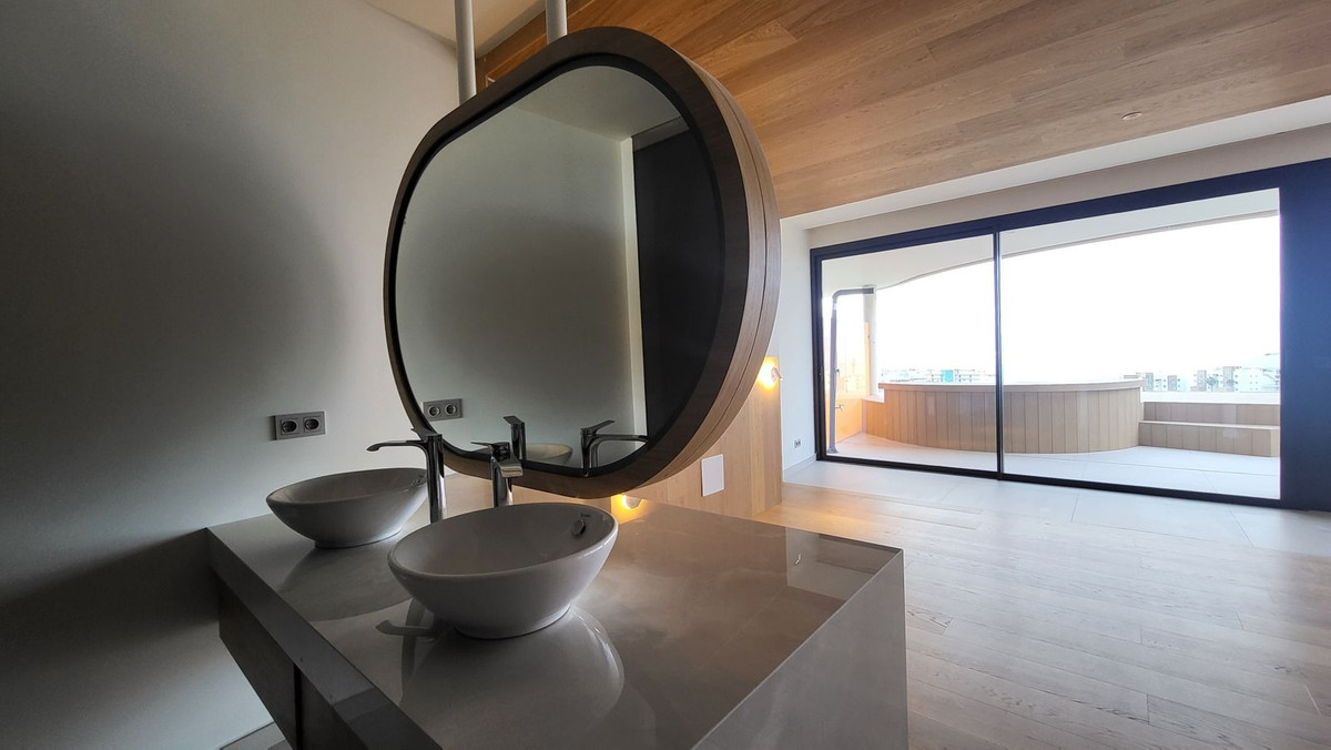 2 chambres, 2 salles de bains, surface construite 90 m², terrasse 50 m².
