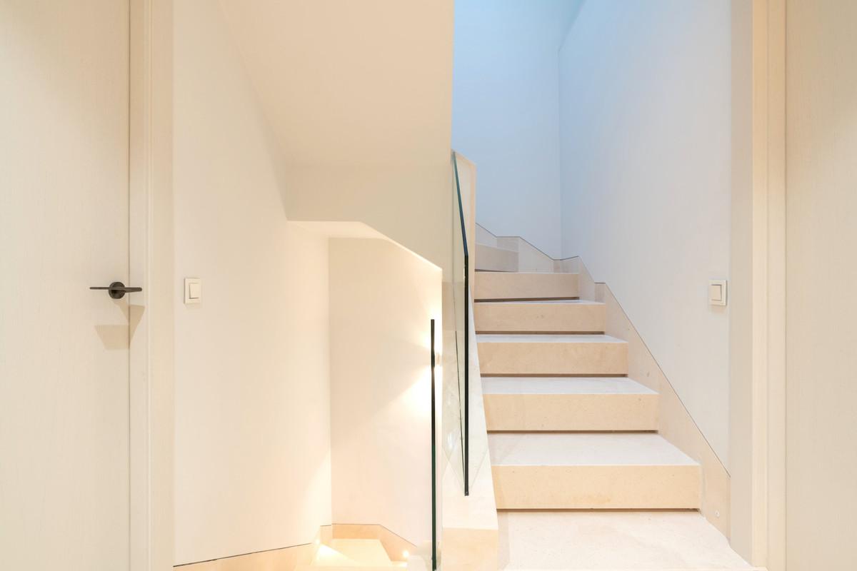 Située au sein d'un domaine privé magnifiquement entretenu et agrémenté de jardins luxuriants, cette résidence offre à ses habitants des prestations haut de gamme, notamment deux piscines, un court de tennis et un terrain de paddle. De plus, la promenade panoramique relie Marbella à Puerto Banús, permettant un accès facile à pied ou à vélo à un large éventail de loisirs, de boutiques de luxe et de restaurants raffinés.