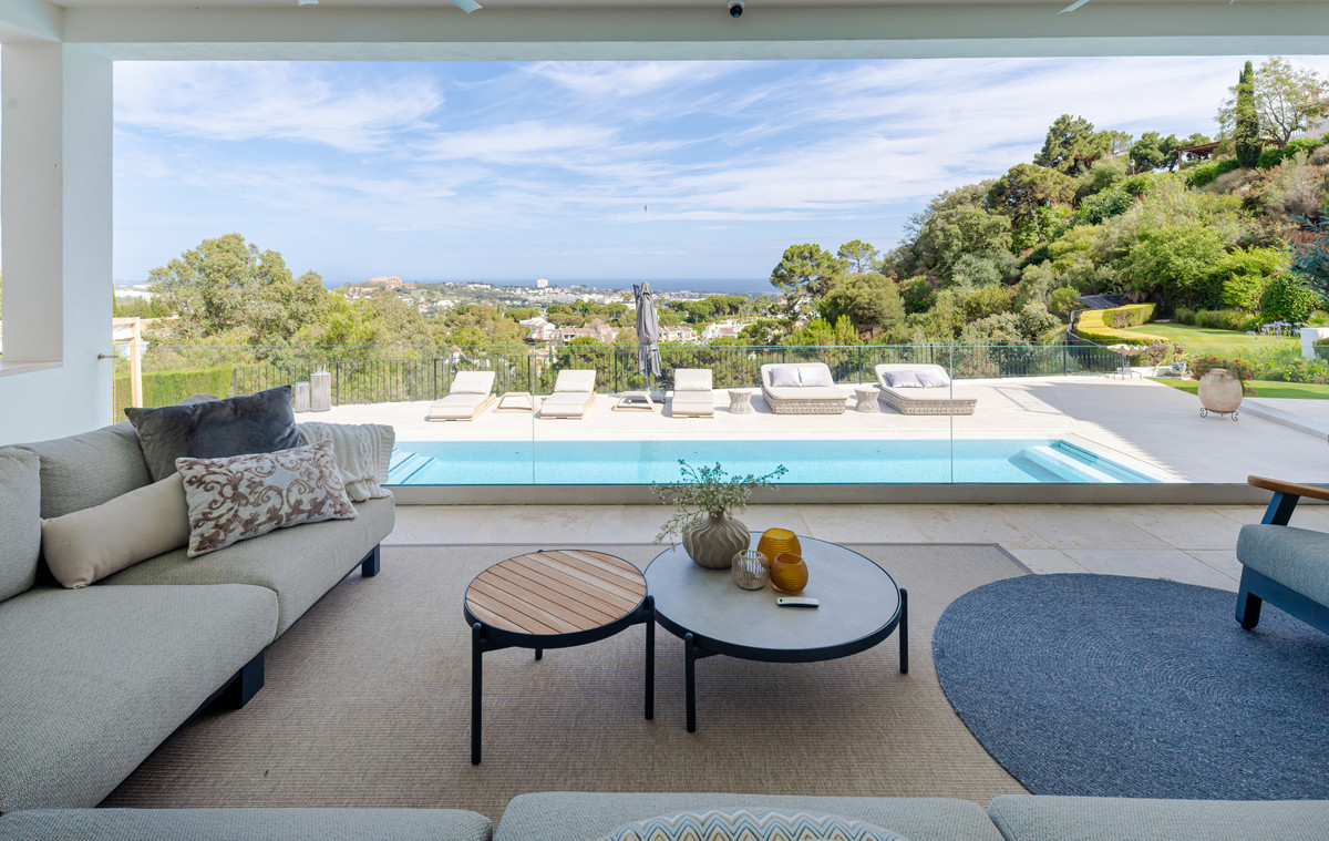 Gaggenhau appliances, all of which lead out to the expansive terrace where you can relish in lounging, dinning and barbecuing, while taking in the stunning sea and mountain views. From this terrace area you can then enjoy the large heated pool were due to its south