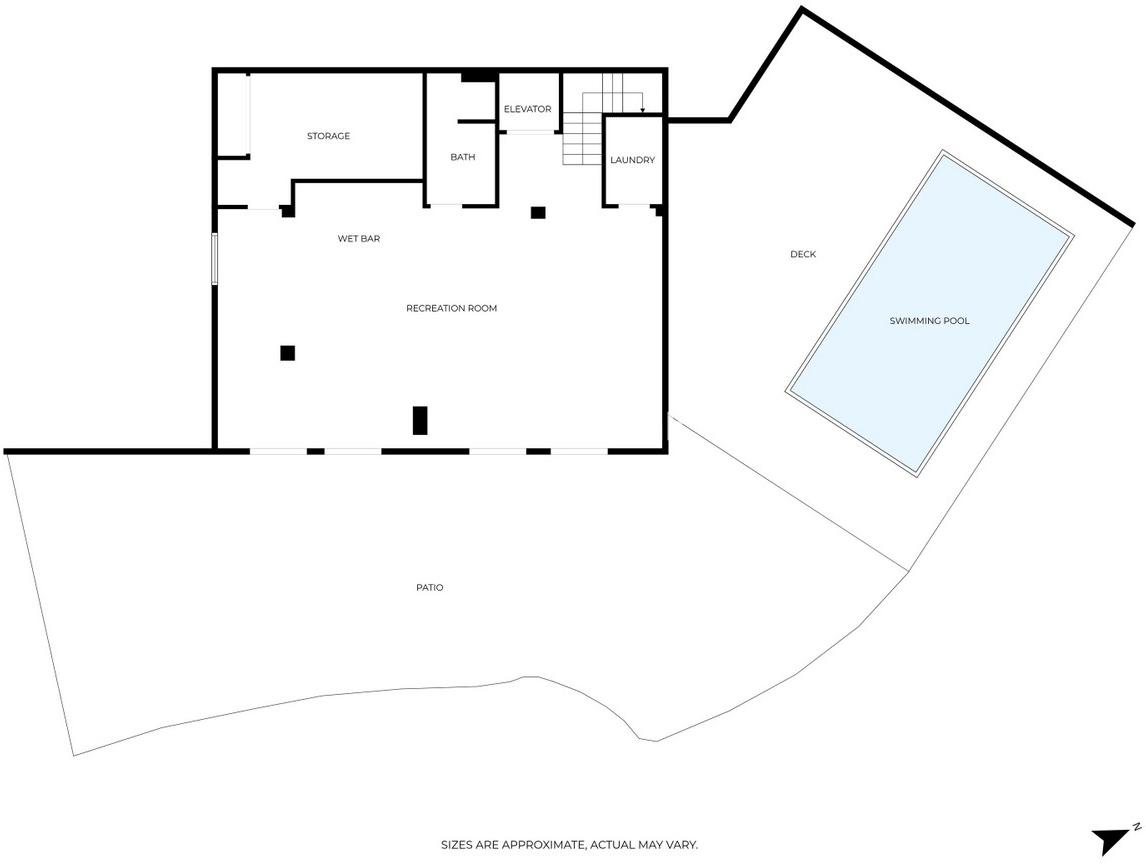 On the lower level, the entertainment area offers a second living room, a fully equipped kitchen, bathroom, and additional storage. This area opens directly onto the garden and pool.