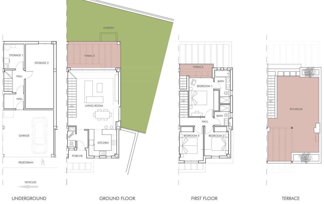 Le rez-de-chaussée vous accueille avec un espace de vie et salle à manger ouvert et sophistiqué, baigné de lumière naturelle et relié harmonieusement à une généreuse terrasse de 69 m² et à un jardin privé de 90 m², idéal pour profiter du style de vie méditerranéen toute l'année.