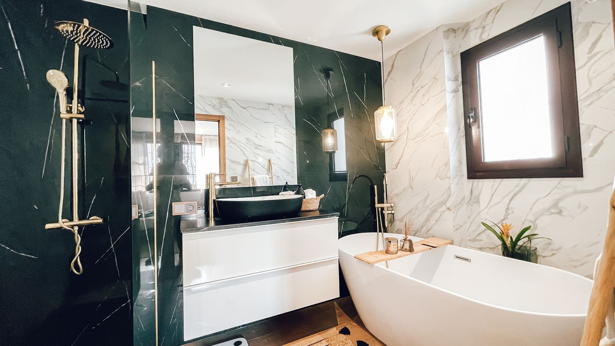 – 2 salles de bains (une avec baignoire et douche, l'autre avec douche).