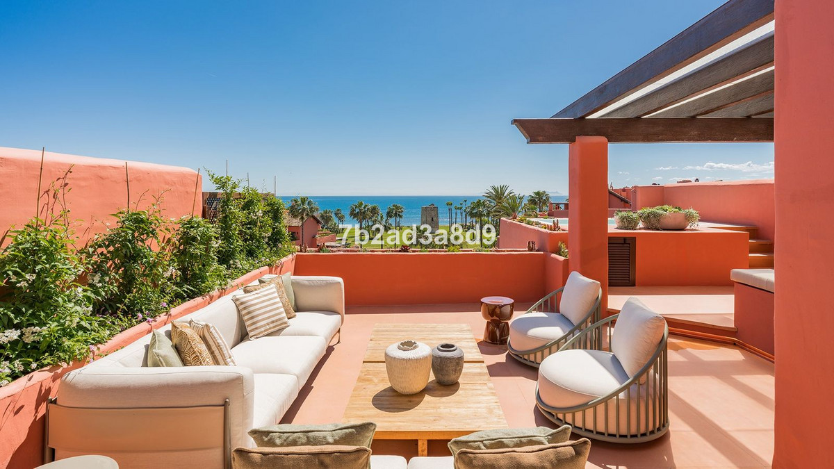 Découvrez le Penthouse Bermeja, un penthouse élégant et entièrement rénové situé dans la résidence en bord de mer de Torre Bermeja, à Estepona.