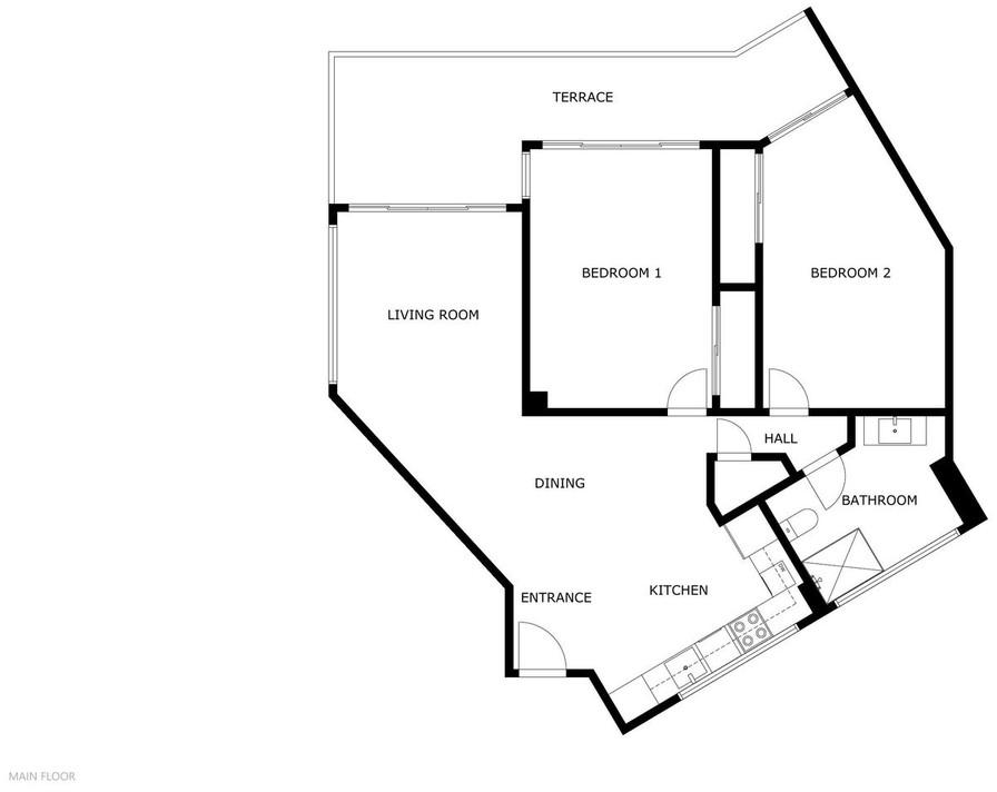 Agencement : 2 chambres spacieuses, 1 salle de bains, un salon lumineux, une cuisine entièrement équipée et une terrasse privée.