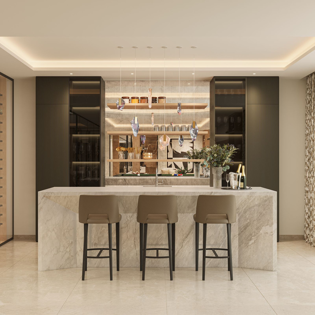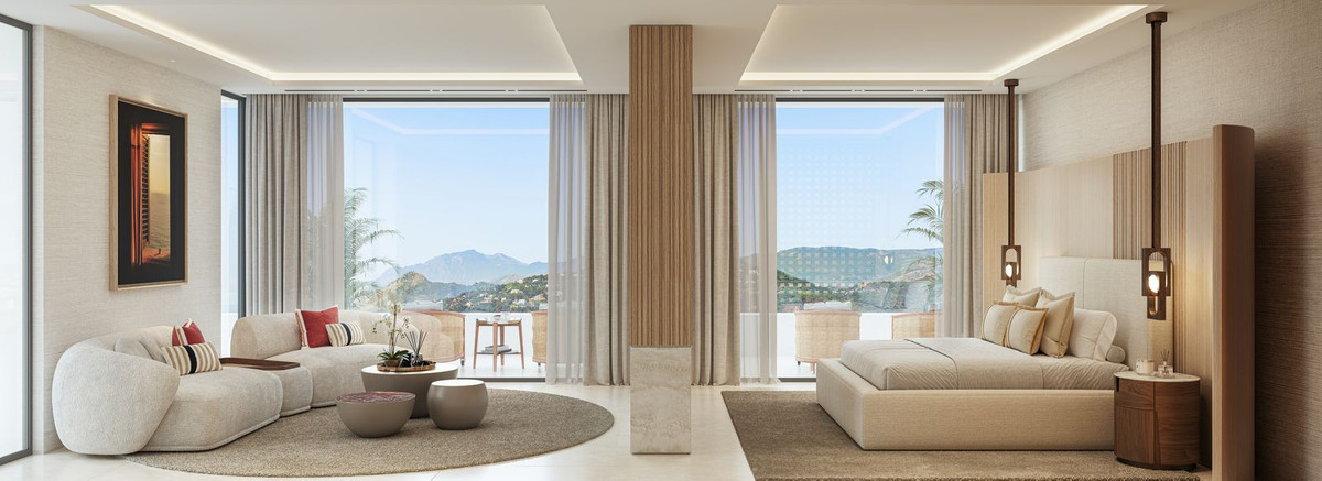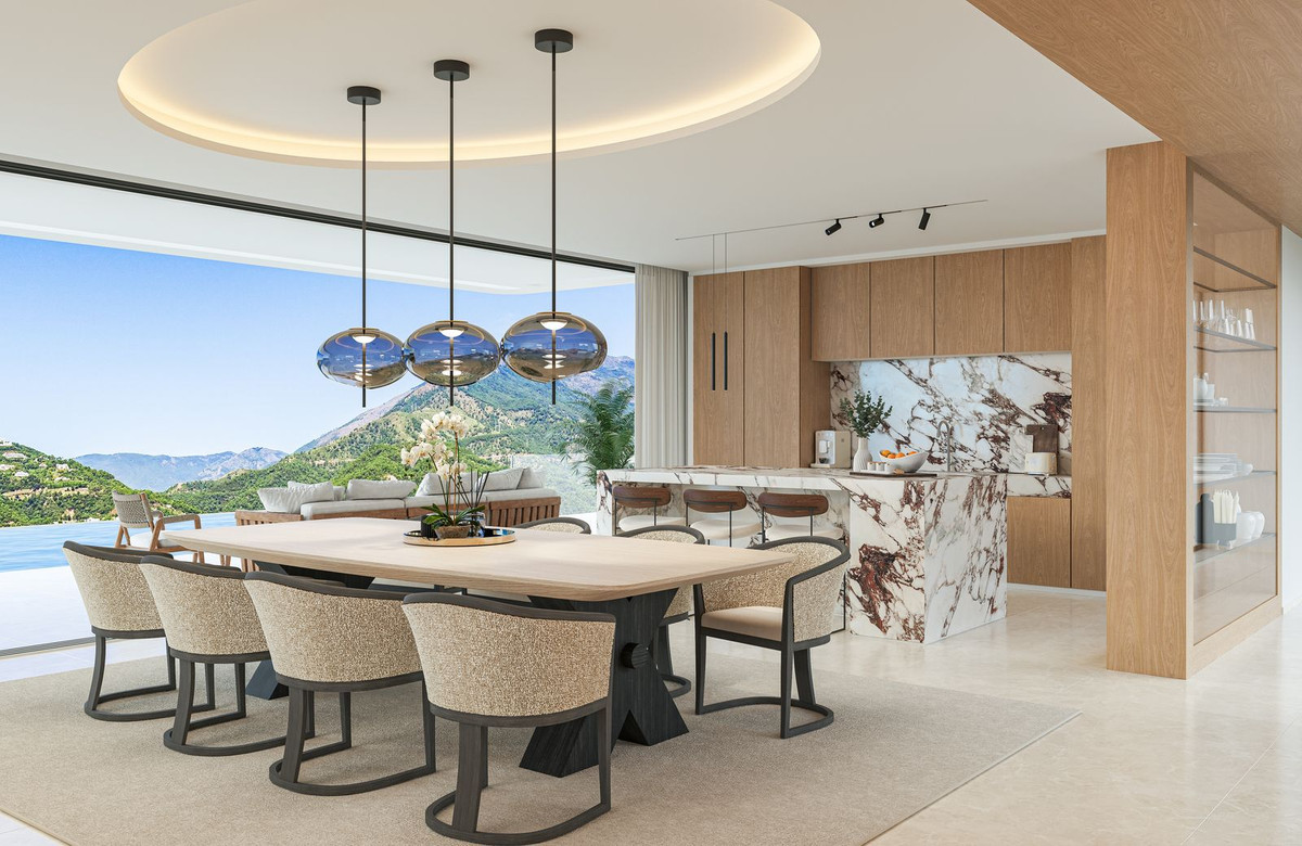 La villa Aurion bénéficie d'une double orientation exceptionnelle, à l'ouest et au sud, offrant un panorama à couper le souffle sur la montagne et la mer. De sa position dominante, elle offre une vue imprenable sur les collines environnantes et l'impressionnante chaîne de montagnes de la Sierra Bermeja, tout en surplombant le prestigieux domaine du Country Club de La Zagaleta.
