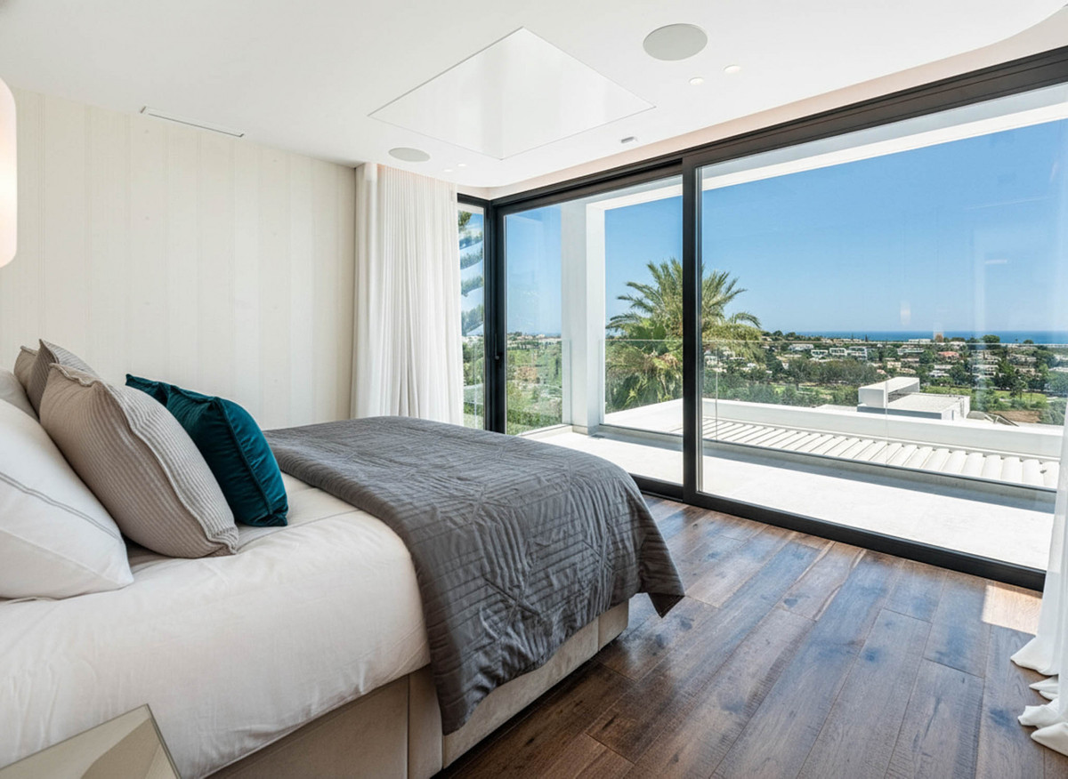 La villa comprend six chambres, chacune dotée d'une salle de bains privative conçue pour un confort optimal et une intimité préservée. La suite principale offre une vue sur la mer et un accès à une terrasse privée. À l'étage, un solarium avec jacuzzi offre une vue panoramique imprenable s'étendant du golf jusqu'à l'Afrique, créant ainsi un espace privilégié pour admirer le paysage environnant depuis le point culminant de la propriété.