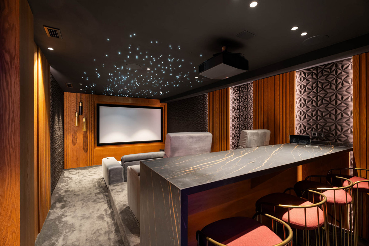 Équipements : Terrasse couverte, Ascenseur, Placards intégrés, Terrasse privée, Solarium, Wi-Fi, Salle de sport, Sauna, Salle de jeux, Appartement d'invités, Salle de bains privative, Sol en marbre, Jacuzzi, Barbecue, Double vitrage, Domotique, Sous-sol, Fibre optique