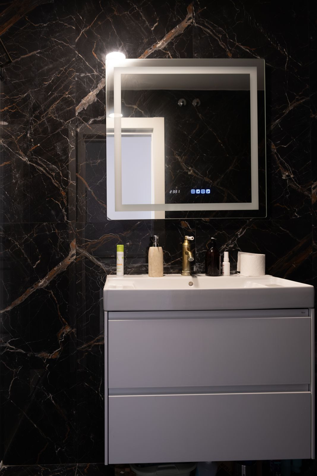 Au rez-de-chaussée, un salon spacieux et lumineux avec cuisine ouverte vous accueille. Conçu comme un espace convivial et ouvert, il est idéal pour le quotidien comme pour les réunions de famille et entre amis. Ses grandes fenêtres laissent entrer une abondante lumière naturelle tout au long de la journée et offrent une vue imprenable sur la mer, transformant chaque instant en un moment unique. À ce même étage se trouve également une salle de bain complète aux dimensions généreuses, aménagée avec des matériaux de haute qualité et un souci du détail exceptionnel.