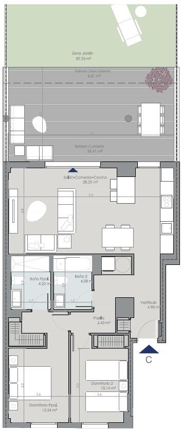 Rez de chaussée, non meublé, cuisine équipée, Underground parking, piscine communautaire, Jardin: Communauté, Orientation: Sud-est