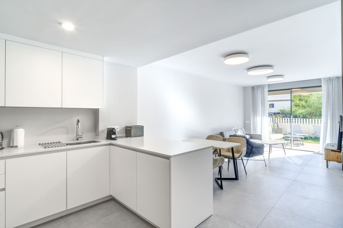 Spectaculaire appartement de deux chambres au rez-de-chaussée dans la toute nouvelle résidence sécurisée Estrella Del Mar, à Marbella. Ce complexe en bord de mer se trouve à seulement 200 mètres de la plage et bénéficie d'un emplacement privilégié à proximité des services, des loisirs, des commerces et des restaurants. La résidence dispose de piscines communes, d'une salle de sport et d'un espace de coworking. La propriété comprend un salon-salle à manger ouvert avec accès à une terrasse et un jardin privés ; une cuisine américaine entièrement équipée avec buanderie ; une suite parentale avec accès à la terrasse ; une chambre d'amis ; et une salle de bains. Elle comprend également une place de parking privée, un cellier, la climatisation réversible, des stores électriques et un système domotique complet.