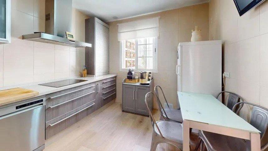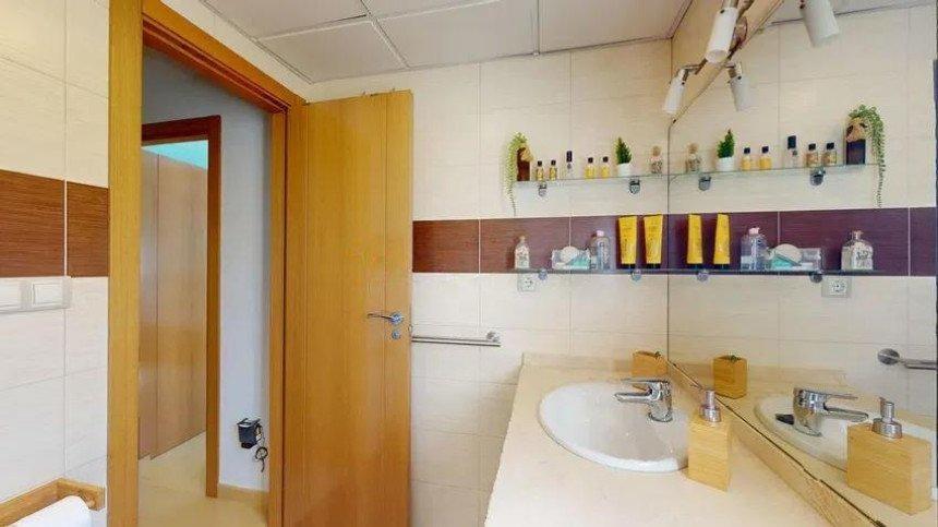 Le point fort de cet étage est le salon-salle à manger de 30 m², doté d'une cheminée à granulés, créant une atmosphère moderne et chaleureuse baignée de lumière naturelle. De là, on accède à une seconde terrasse de 25 m² avec barbecue, idéale pour les réunions de famille ou les soirées d'été entre amis. Cette terrasse communique directement avec les espaces communs, qui comprennent des jardins et deux piscines (une pour adultes et une pour enfants).
