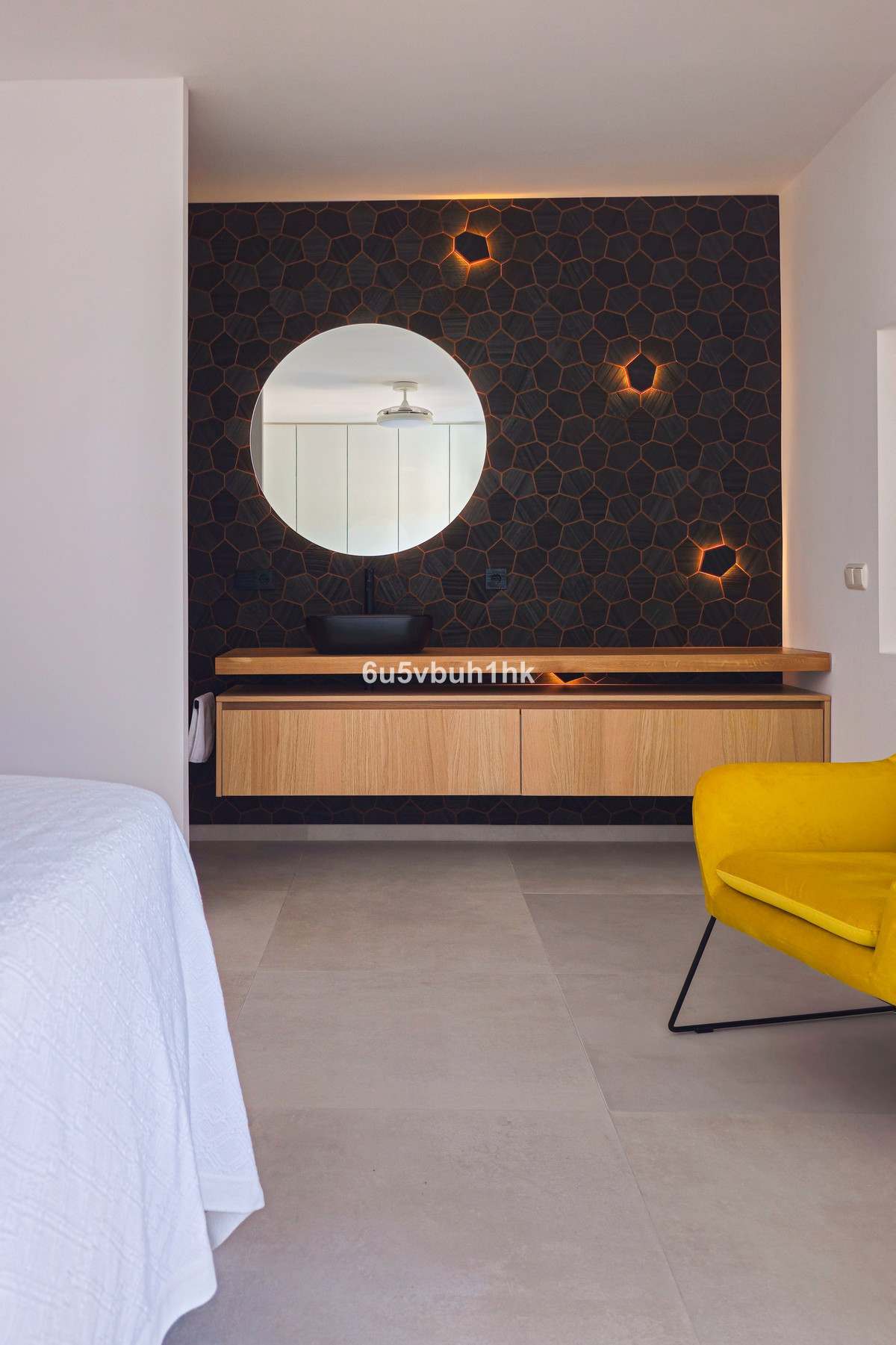 L'étage supérieur est dédié au repos et à la détente, avec deux chambres accueillantes. La suite parentale donne sur des jardins paysagers communs, dont la vue paisible souligne le calme. Chaque détail reflète le savoir-faire et la qualité : un sol en porcelaine pour une base intemporelle, des salles de bains revêtues de carrelage italien Marazzi, des robinetteries Treemme et des appareils électroménagers Villeroy & Boch – des finitions choisies pour leur confort et leur style intemporel. Le confort est encore accru par le chauffage au sol dans toute la maison, garantissant chaleur et confort en toute saison.