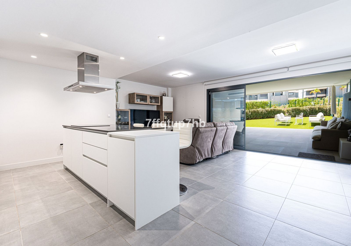 Cet appartement de trois chambres présente un design ouvert, intégrant harmonieusement une cuisine moderne entièrement équipée et le séjour. Il s'ouvre sur une spectaculaire terrasse exposée plein sud et un jardin privé de 80 m², idéal pour profiter du soleil infini qui caractérise la Costa del Sol.