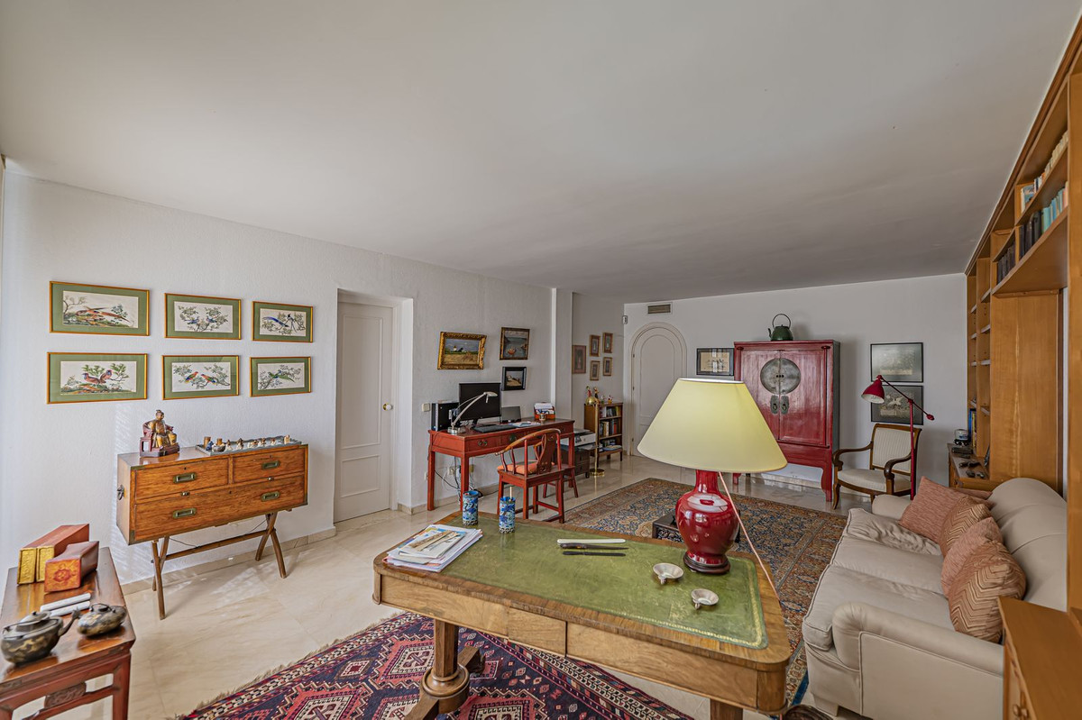 Grande propriété répartie sur deux étages avec un total de quatre chambres, quatre salles de bains, un grand salon avec une terrasse spacieuse donnant sur la mer, une cuisine séparée avec terrasse, une grande pièce idéale pour une salle de sport ou un home cinéma, un jardin privé, etc.