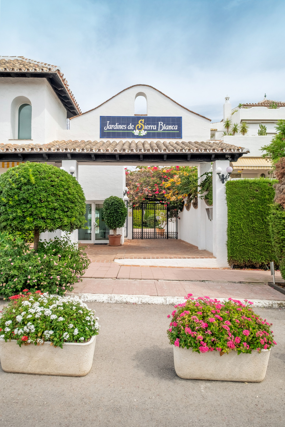 Située au sein d'un charmant quartier aux façades blanches de style espagnol, la résidence offre des jardins paysagers et une grande piscine, créant un cadre méditerranéen paisible. Elle dispose également d'un ascenseur, d'un garage privé au sein de l'urbanisation et de faibles charges de copropriété (seulement 167 €/mois). Un parking extérieur est également à disposition des résidents.