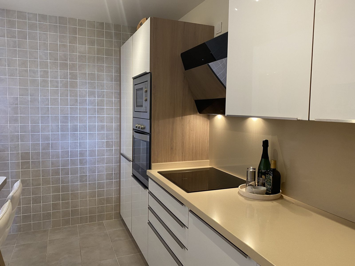 La cuisine moderne est entièrement équipée et fonctionnelle. La chambre principale dispose de sa propre salle de bain et de nombreux rangements, tandis que la chambre d'amis est spacieuse et dispose également de placards. Les toilettes invités servent actuellement de débarras, mais peuvent facilement être rénovées. Un parking souterrain avec ascenseur est inclus dans le prix, pour un quotidien confortable et sécurisé.