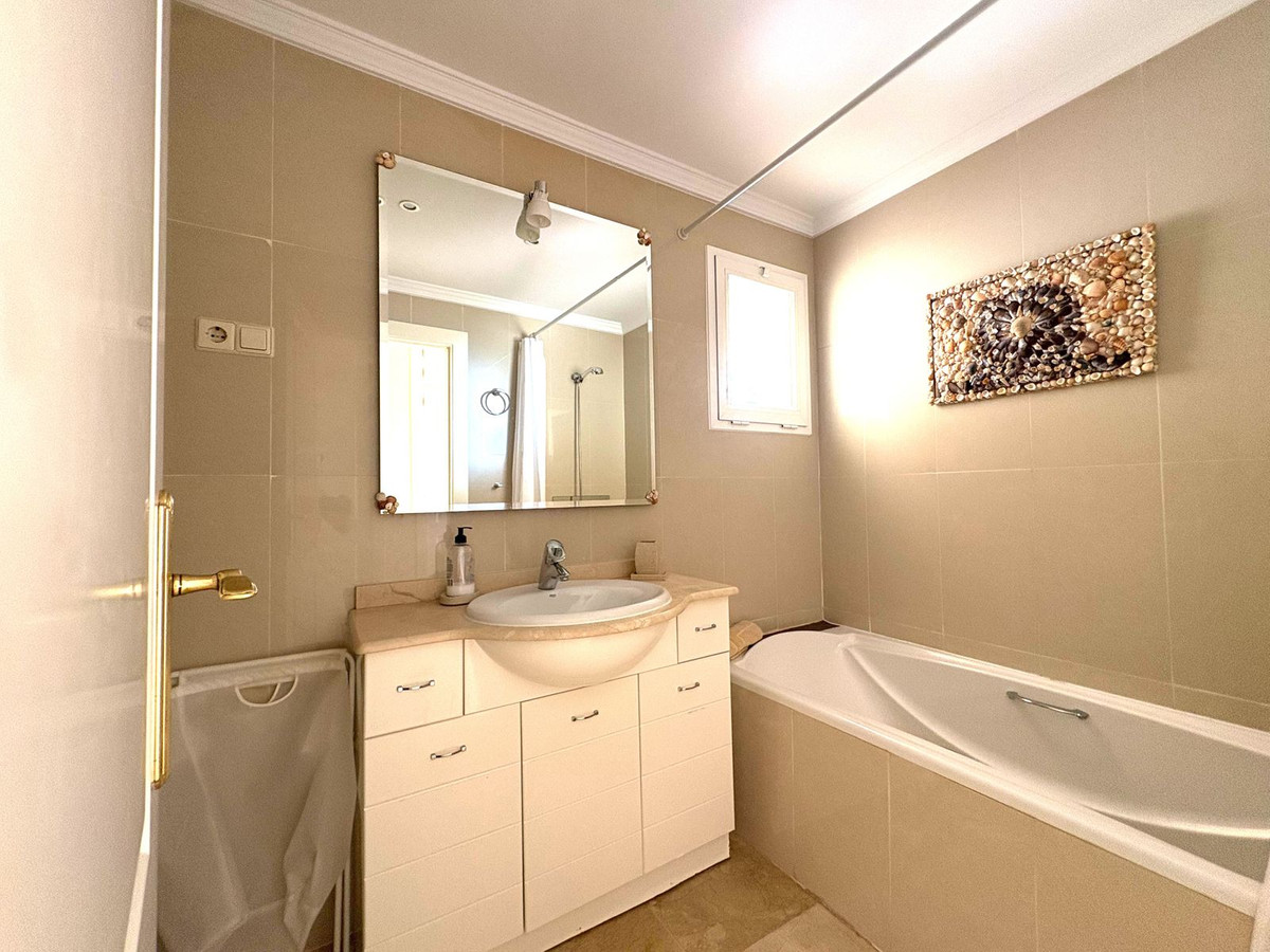 Spacieux et décoré avec goût, cet appartement de trois chambres et deux salles de bain s'étend sur 116 m² et dispose d'un spacieux séjour de 42 m². La plus grande des deux terrasses, d'une superficie de 33 m², est exposée est et offre une vue panoramique imprenable sur le paysage pittoresque qui s'étend jusqu'au golf de Santana. La plus petite, quant à elle, surplombe la piscine principale immaculée et le jardin paysager soigné. Chaque pièce est équipée de climatisation individuelle pour un confort personnalisé. L'intérieur est entièrement revêtu de marbre brillant et la cuisine est entièrement équipée d'appareils électroménagers modernes. Un parking souterrain, un espace de rangement, un coffre-fort, un vidéophone et bien plus encore sont également à votre disposition. L'appartement est vendu non meublé, avec possibilité de négociation.