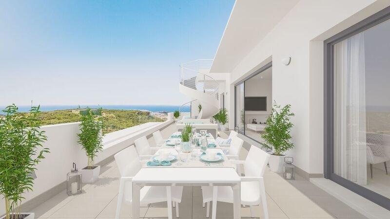 Grandes salles à manger avec cuisines intégrées, entièrement équipées d'appareils électroménagers Siemens (ou similaires), avec meubles et hotte encastrée, réfrigérateur américain dans les penthouses, deux terrasses et vue sur la Sierra de Casares et Estepona. Chambres principales avec salles de bains attenantes, dressings, placards avec éclairage LED et terrasse. Salles de bains avec douche à effet pluie, WC suspendus, réservoir d'eau caché et bain à remous dans les penthouses.