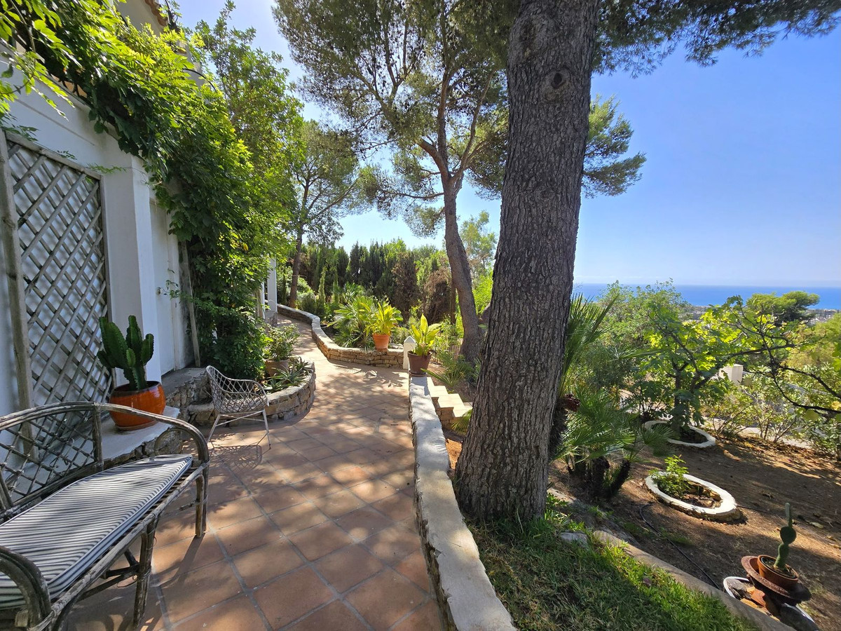 Située au milieu de pins parfumés dans le prestigieux quartier de Montúa, juste au-dessus de Marbella, au pied de la majestueuse montagne La Concha, cette charmante villa de style cortijo de plain-pied allie parfaitement le caractère andalou traditionnel au confort moderne.