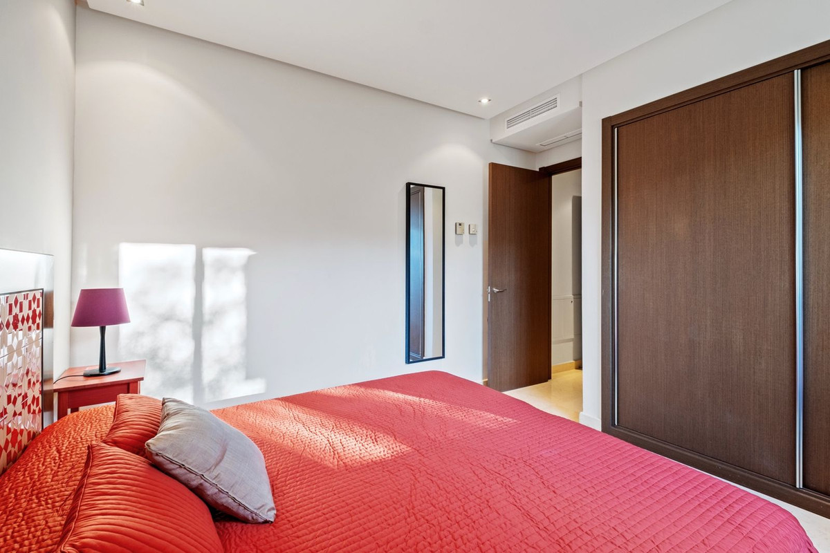 The apartment features 2 bedrooms and 2 bathrooms, with very spacious rooms, especially the master bedroom. The living room can be converted into a third bedroom: when open, the door is fully integrated and invisible, when closed it becomes a stylish featured wall.