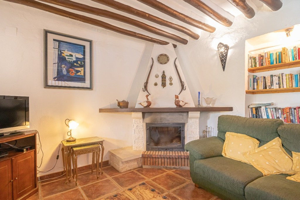 Ground floor: Large entrance porch with dining table, entrance hall with a toilet under the stairs, living room with a beautiful fireplace, wood-beamed ceilings, a large, separate, equipped kitchen with a dining table.
