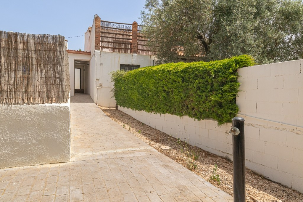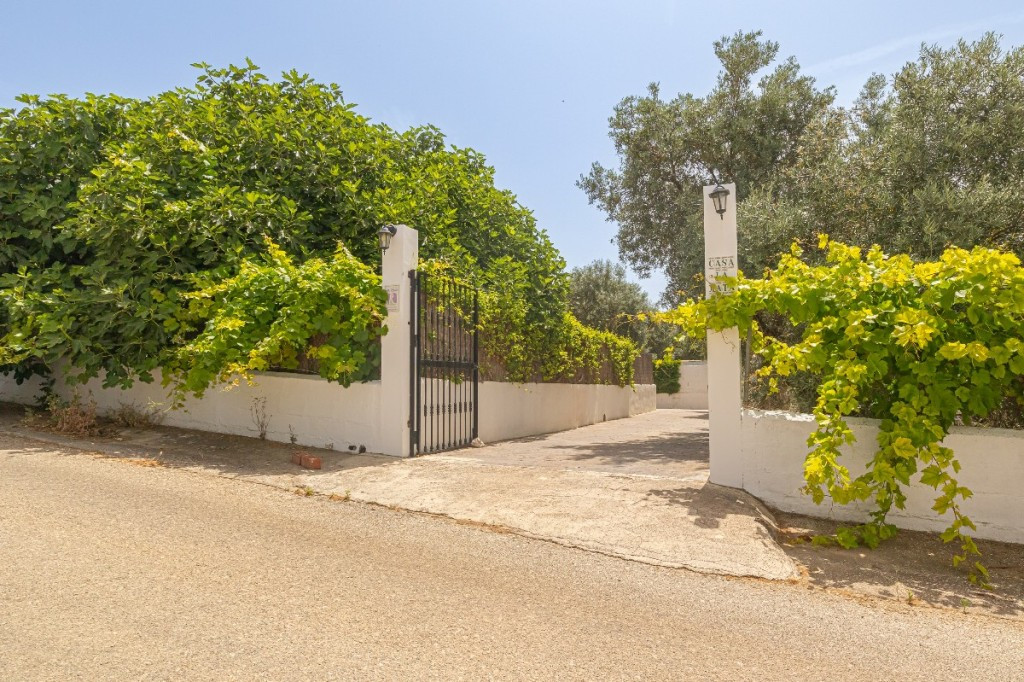 Vehicle entrance with parking for several vehicles and a fully fenced green area with olive trees. A picturesque entrance through a reception hallway leads to a beautiful interior courtyard that divides the 3 properties and also provides access to the pool and barbecue area.