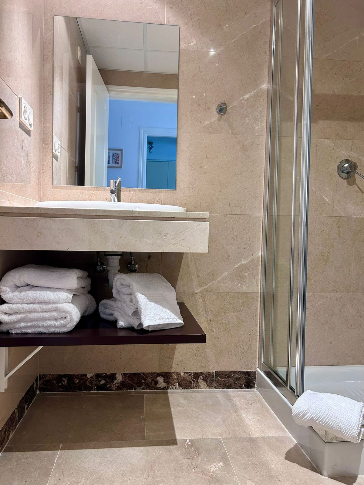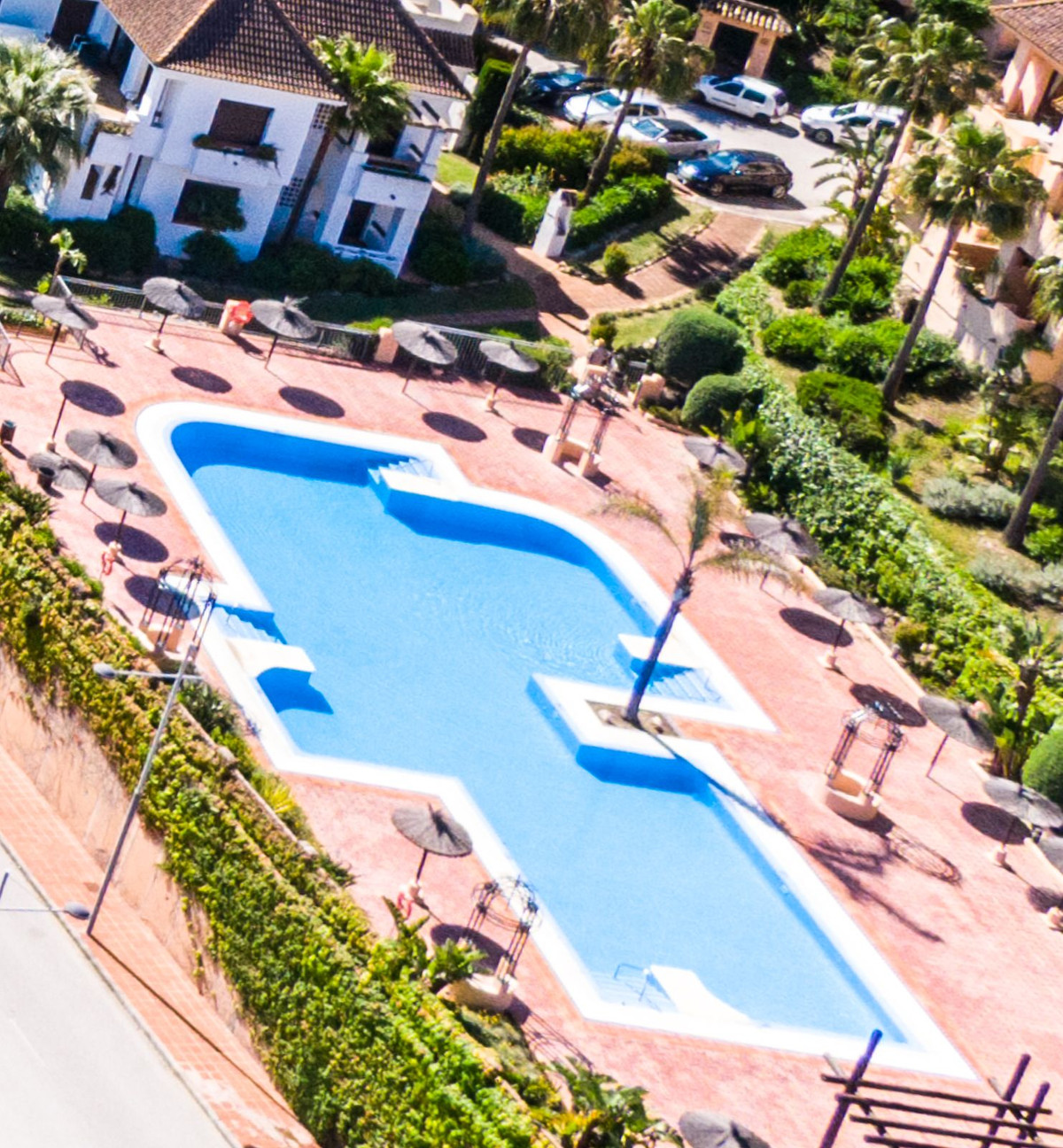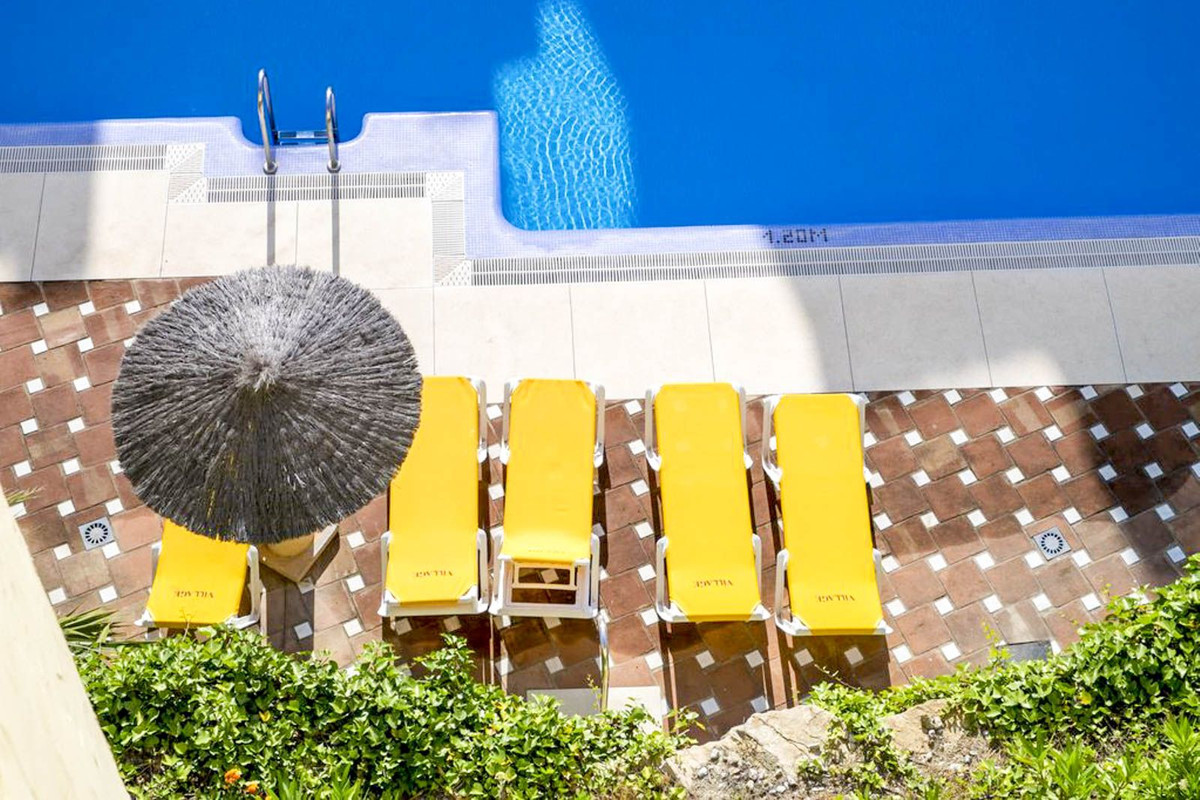 Located in the exclusive Duquesa Village development, this beautiful apartment offers a perfect combination of comfort, tranquility, and spectacular sea views. Located just minutes from the beach, golf courses, and all amenities, it boasts excellent connections to the highway, making it an ideal location for both living and investing. The 115 m² home, in perfect condition, stands out for its brightness and south-facing orientation, providing morning sun and a feeling of spaciousness. Although listed as a first floor, its actual height is equivalent to a third floor, ensuring privacy and unobstructed views. It features two double bedrooms, two full bathrooms, a spacious living-dining room with direct access to a covered terrace with open views, a fully equipped kitchen, and a separate laundry room. It includes an underground parking space, a storage room, and a valid tourist license, perfect for vacation rentals. The development offers 24-hour security, five communal pools surrounded by gardens, a paddle tennis court, and is pet-friendly, all in a well-maintained and privileged setting.