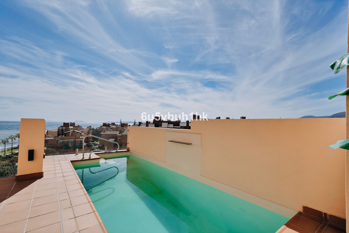 Découvrez ce spectaculaire penthouse en duplex de 3 chambres et 3 salles de bains, situé dans le prestigieux complexe Bahía de la Plata, en bord de mer à Estepona. Un bien d'exception alliant luxe, confort et un cadre idyllique offrant une vue imprenable sur la mer Méditerranée et le rocher de Gibraltar.