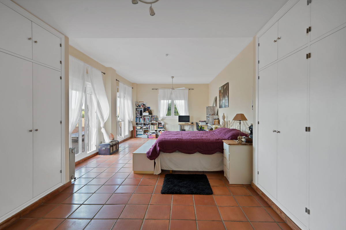 Au premier étage se trouve la suite parentale avec salle de bains privative et une grande terrasse offrant une vue panoramique. Deux autres chambres complètent l'étage, dont une avec sa propre terrasse et une salle de bains.