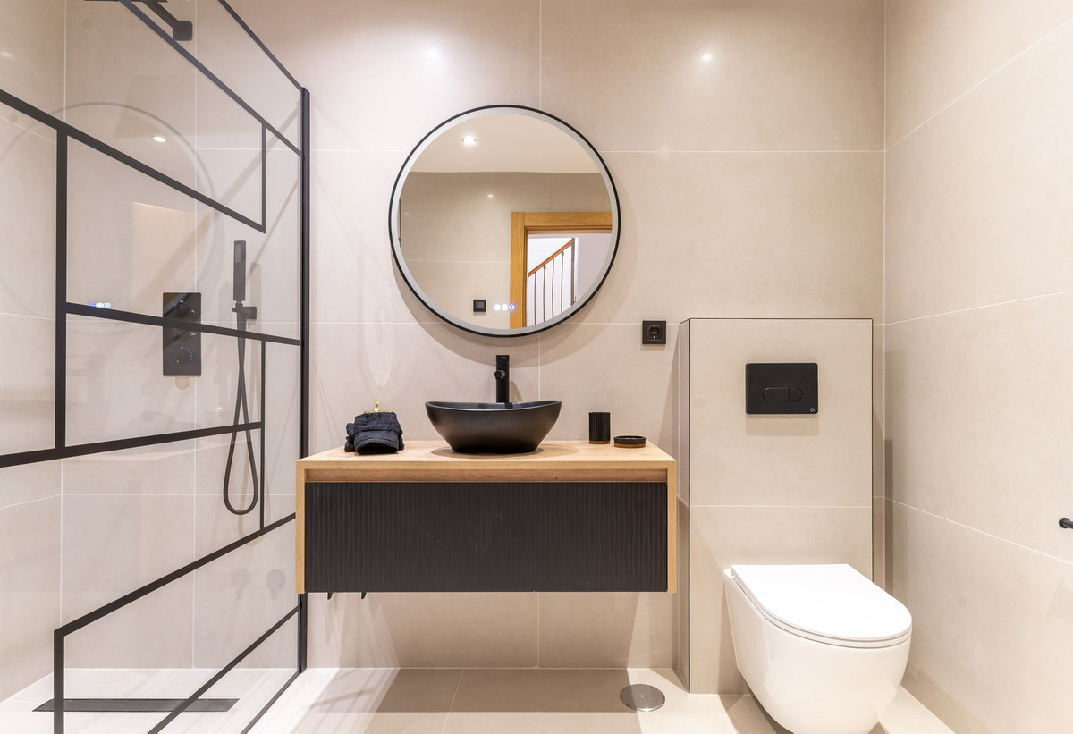 L'espace de vie ouvert, comprenant salon et salle à manger, se prolonge vers une cuisine élégante et entièrement équipée avec électroménager intégré et cave à vin. Une cheminée contemporaine crée une ambiance chaleureuse, rendant cet espace idéal au quotidien comme pour recevoir. Chaque chambre est dotée de placards intégrés et d'une salle de bains privative. La suite parentale bénéficie d'une terrasse privée et d'une salle de bains spacieuse, tandis que la suite du dernier étage dispose d'une terrasse privée et d'espaces de rangement – parfaite pour accueillir des invités, aménager un bureau ou un espace de détente.