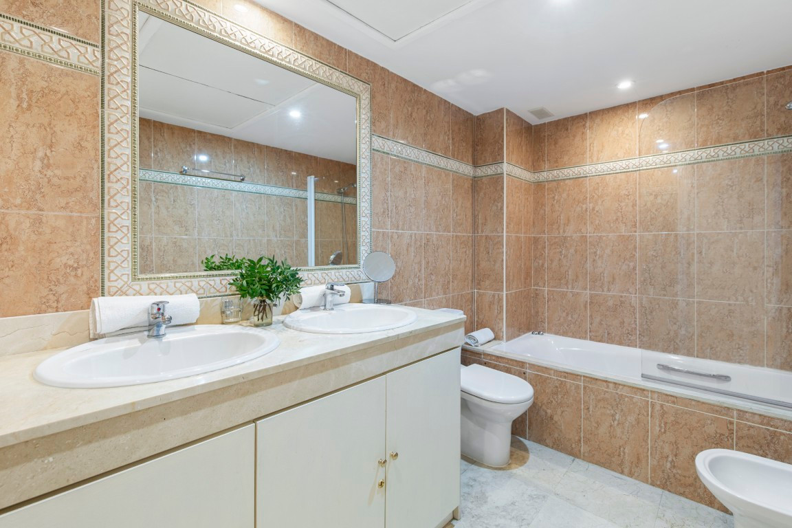 Le point fort de cet appartement est son impressionnante terrasse privée de 60 m², partiellement couverte, qui permet de profiter du plein air toute l'année. De là, on peut admirer de superbes vues sur les jardins luxuriants, la verdure environnante et la mer à l'horizon, créant un cadre paisible et inspirant.