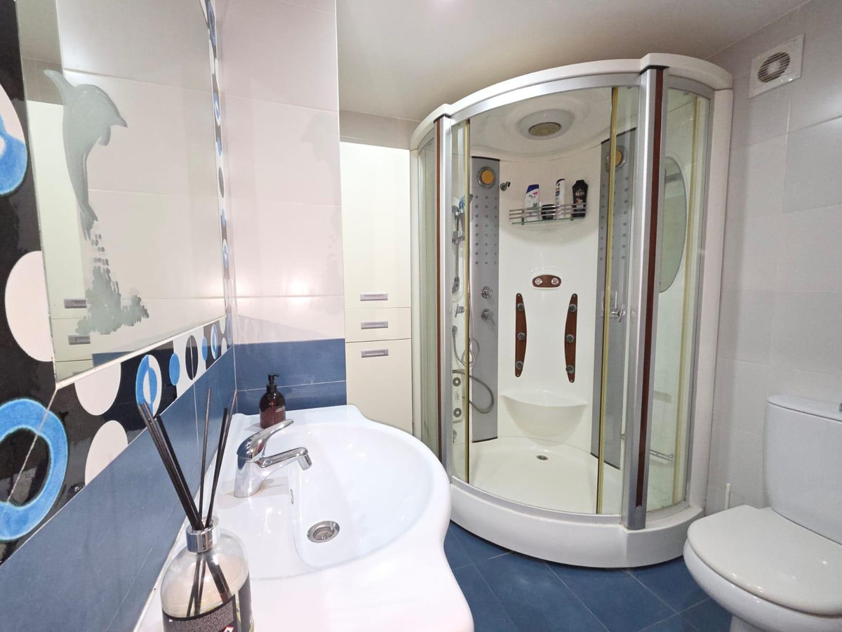 Salle de bain entièrement rénovée avec douche, en excellent état.