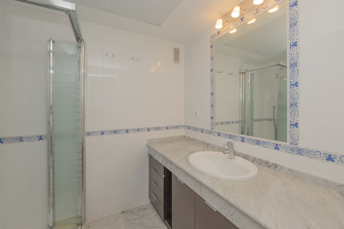 Venez découvrir un véritable havre de paix dans cette charmante maison jumelée, un refuge paisible au sein d'un complexe résidentiel en bord de mer. À seulement 4 km du centre de Marbella, elle bénéficie d'une sécurité 24h/24 et 7j/7. Nichée dans le prestigieux complexe résidentiel Bahía de Marbella Macro, elle offre un cadre de vie exceptionnel. Ce complexe de style andalou rustique se distingue par ses nombreux espaces verts soigneusement entretenus, ses maisons blanchies à la chaux et ses allées sinueuses évoquant une promenade dans un authentique « Pueblo Blanco » andalou. Située en angle, cette maison bénéficie d'une intimité et d'une discrétion optimales. L'agencement, déterminé par le terrain, est le suivant : au premier étage, vous accédez à un vaste séjour à la décoration minimaliste qui accentue la sensation d'espace. Ce séjour comprend un coin repas séparé avec accès à une terrasse de 20 m², une cuisine entièrement équipée, une buanderie séparée avec un grand placard et une salle de bain complète. Au niveau inférieur, un hall d'entrée dessert les deux chambres principales, chacune donnant sur un jardin privatif de 40 m², ainsi qu'une salle de bain complète. Une troisième pièce peut être aménagée en salon ou en chambre. Le complexe comprend, outre ses nombreux atouts, deux espaces piscine, un club social réservé aux propriétaires (ouvert en moyenne et haute saison), un accès direct aux plages de sable blanc de la baie de Marbella et à la « Pasarela Litoral », une magnifique promenade en bois qui reliera l'ensemble de la Costa del Sol le long du rivage. Cette promenade permettra de rejoindre le centre-ville de Marbella sans quitter la plage, grâce à un superbe chemin piétonnier en bord de mer. La propriété est en parfait état et prête à être habitée, que ce soit comme résidence principale ou secondaire. Une place de parking est incluse dans le prix.