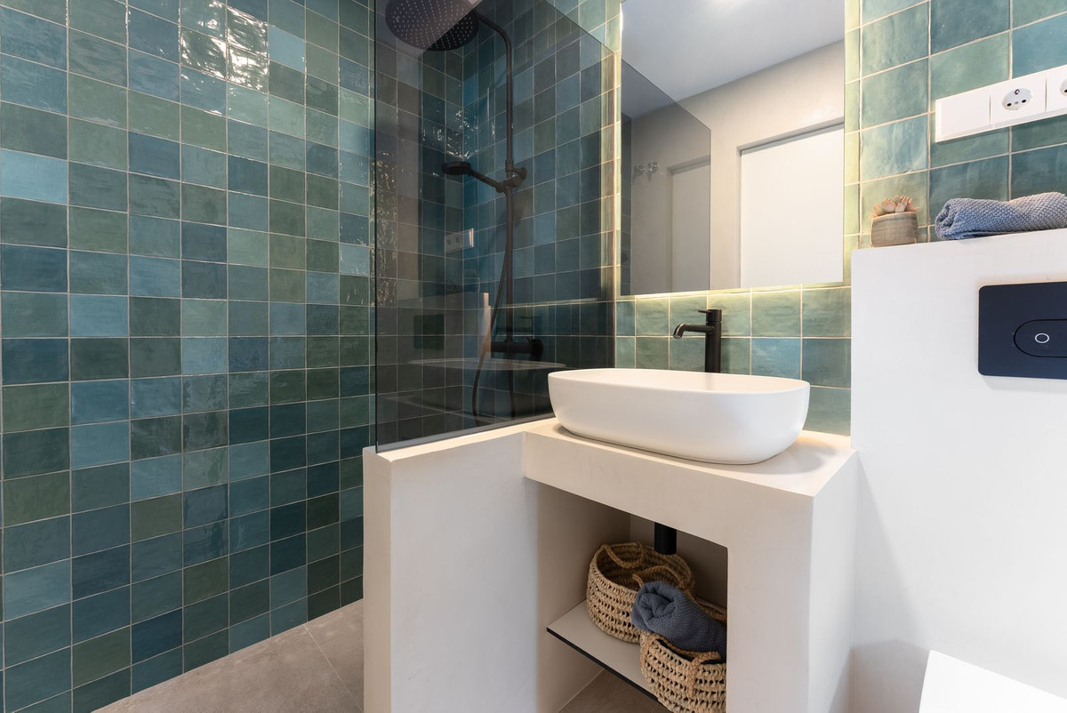 L'appartement a été entièrement rénové avec des prestations haut de gamme, incluant l'électricité, la plomberie, des salles de bains design avec chauffage au sol, une cuisine moderne équipée d'appareils Siemens, un carrelage grand format en porcelaine de la prestigieuse marque Porcelanosa et deux chambres spacieuses. Il dispose de deux terrasses : l'une au niveau du séjour/salle à manger et de la cuisine ouverte, l'autre au niveau du solarium offrant une vue imprenable sur la mer et une intimité absolue. Une pergola design en bois, équipée d'un store motorisé et d'un capteur de vent, y a été installée. Les couchers de soleil y sont tout simplement époustouflants.